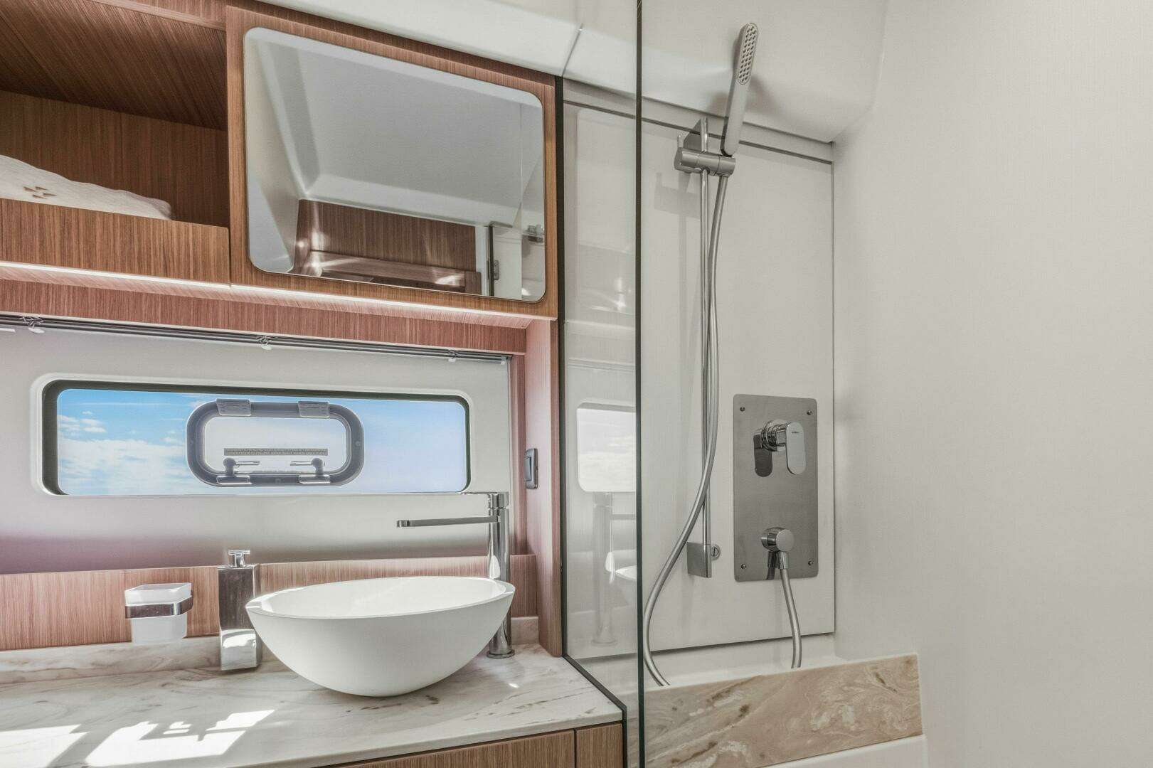 - Freshwater/saltwater wash-down system in cockpit and anchor locker with dedicated pump
