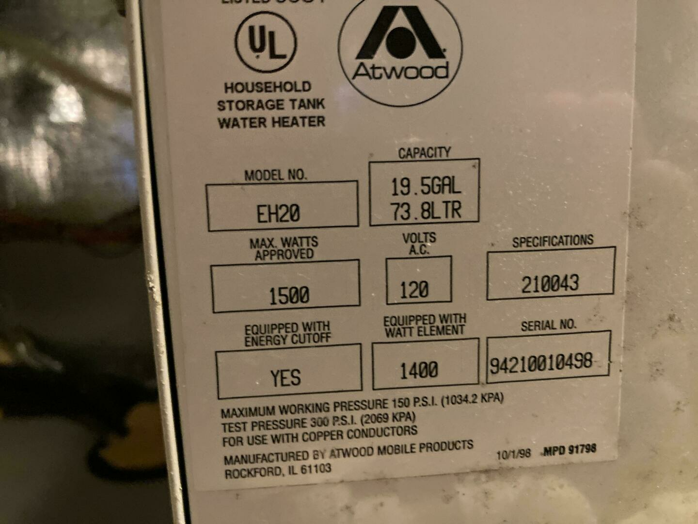 - 19 Gallon Water Heater