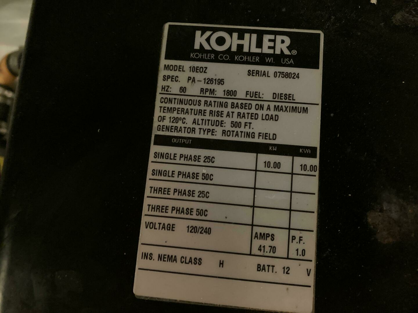 - Generator Make: Kohler