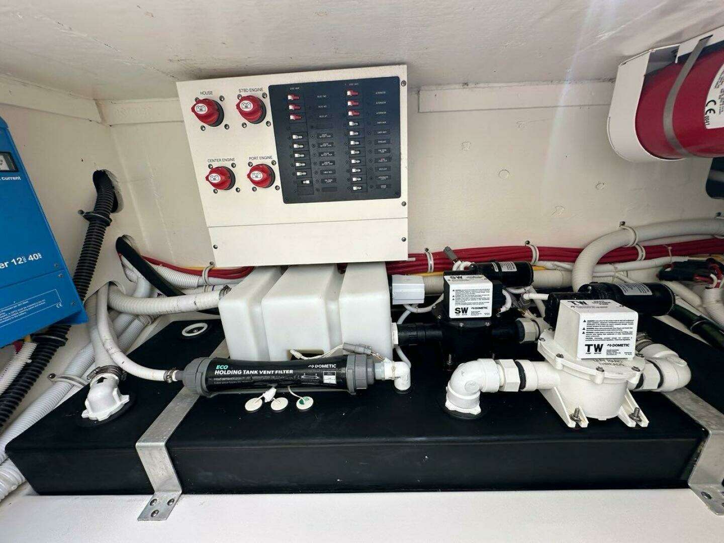 - Three Automatic/Manual Electric Bilge Pumps with Indicators at Helm: One Forward, One Midship and One Aft