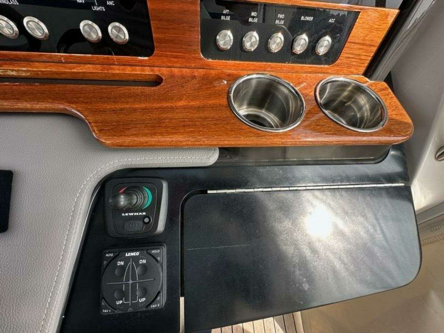 The sleek styling of the 43 LS is best complemented by power and performance. Yamaha® power combined with glass cockpit integrated electronics including Garmin® Marine navigation systems provide comfort and control at the helm. Optional Yamaha® helm master joystick steering offers an additional level of command at the dock or underway. A fuel capacity of 400 gallons combined with a top speed over 50 mph gets you to your favorite port of call fast, giving you more time to enjoy with family and friends.