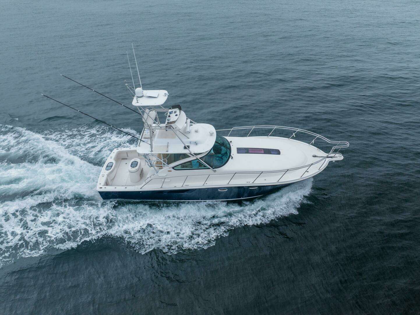 2015 Tiara 43 Open "TEDDY'S FLOAT TOO" with all tournament options. She combines the comforts of an express cruiser with the functionality of a top-tier sportfishing boat. Tiara has been building crossover boats like this for years, and the fish/cruise template hasn’t changed much since the original 3100 Open was launched in 1979. Key to the 4300’s exceptional versatility is an expansive cockpit with insulated fish boxes port and starboard, center bait tank, transom bait tank, Marlin tower, outriggers and all the fishing amenities an angler could want. Mezzanine seats overlook the cockpit, and on the raised helm deck the swivel seat on the L-lounge becomes a forward facing companion seat. Below deck, there are two staterooms in the 4300 Open, a master forward with pedestal queen berth, and a guest cabin with 1 berth. The salon settee converts to a double berth, and a flip-up bunk brings the sleeping capacity to five. Built on a balsa-cored hull with a well-flared bow, twin 715hp Cummins inboard diesels cruise at 25–28 knots. This boat is ready for a new home. See full listing for more details or call today for a showing.