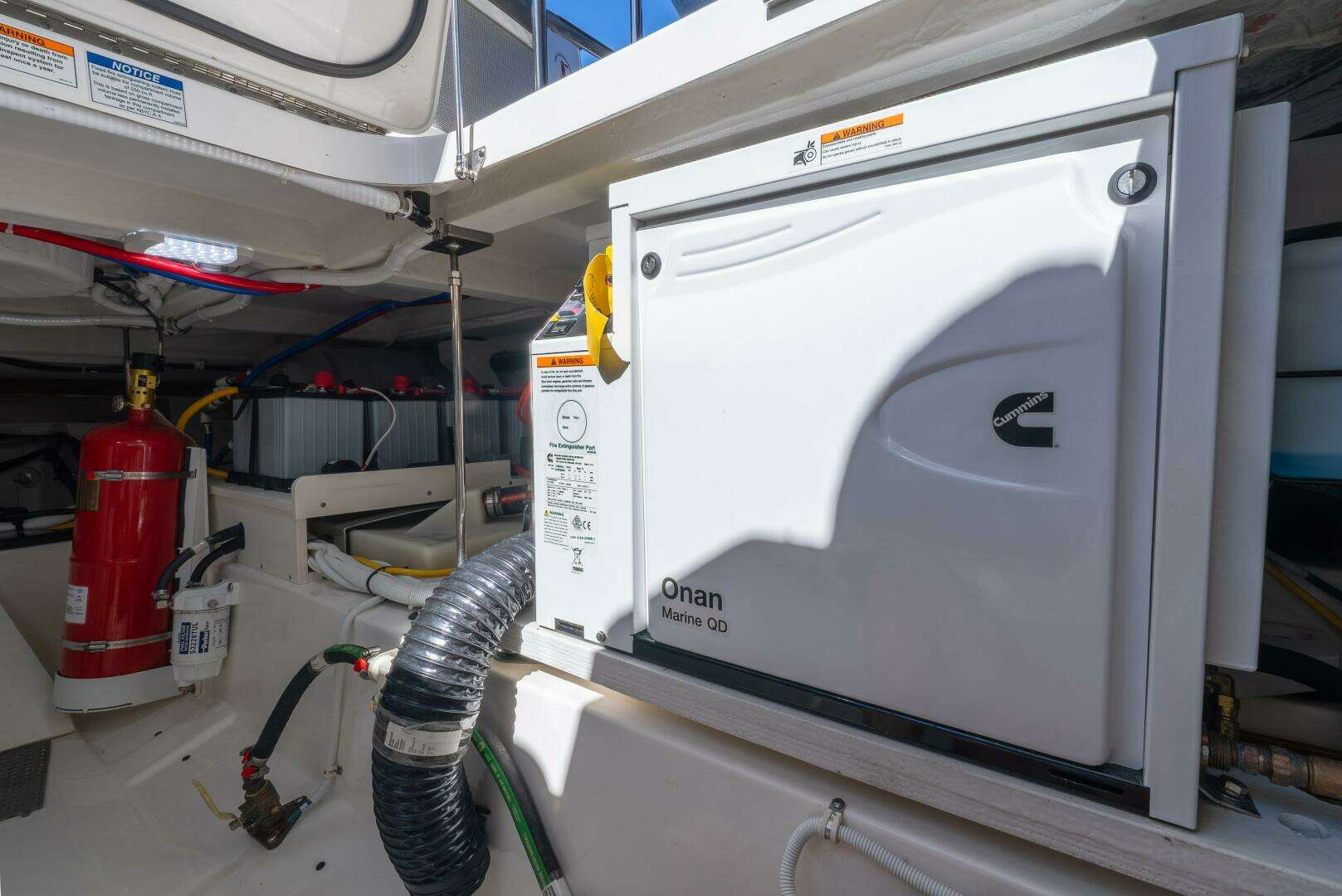 This 2025 Tiara 43 LE, powered by twin Mercury 600 V12 Verados, boasts a cruising speed of 35 mph while delivering a soft, impressively dry ride. Whether the sunroof and aft bulkhead are open or closed, interior sound levels are extremely quiet. Two roomy staterooms with queen berths share a full head with separate shower. The Salon in the later 43 LE models, like this one, have much more interior space, providing room for a surprisingly large galley and convertible settee. The bow is easy to access via walk-around decks, making the handling and fastening of fenders and dock lines a breeze. Two seats behind the aft Salon bulkhead face a brilliant, rotating cockpit seating console. The starboard side bulwark contains a dive door, and the port side bulwark folds down to increase deck space. The “back” of the seating console has a grill and storage for fenders, lines, and a spare anchor. Enjoyment of this well-optioned Tiara is further enhanced by a diesel generator for seamless AC power and a SeaKeeper SK6 Gyrostabilizer and Zipwake auto-trim tabs.