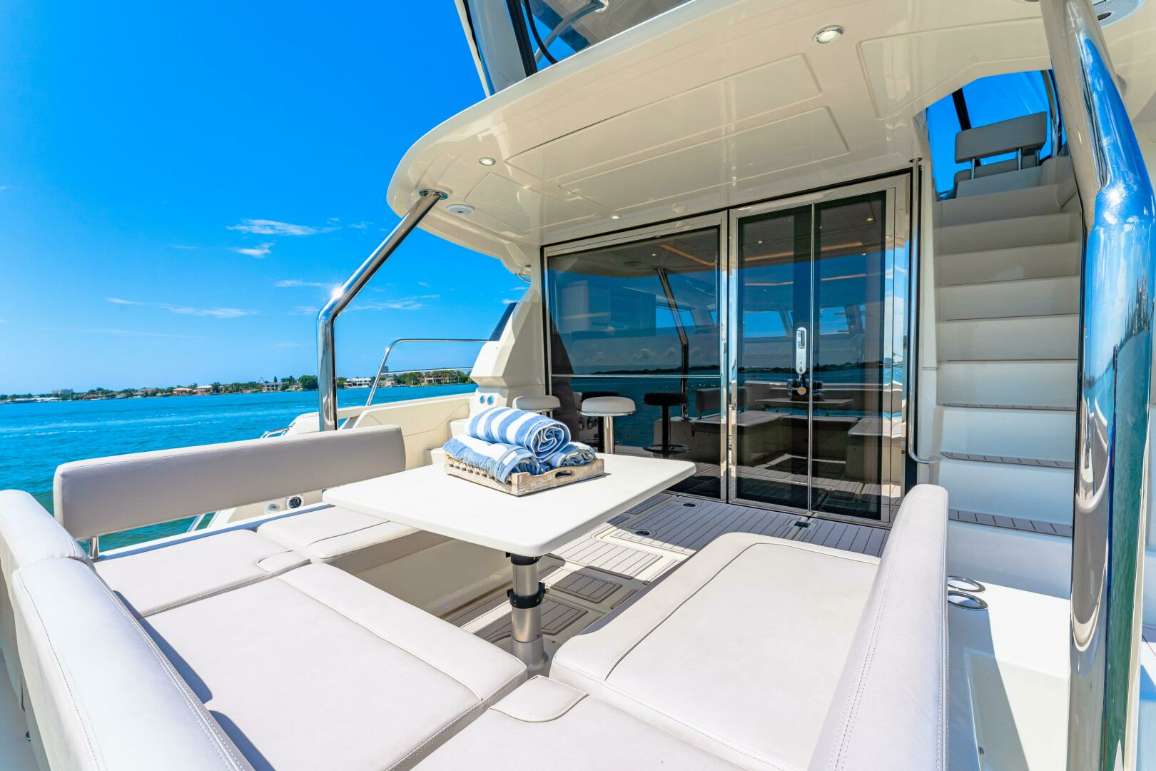 - Stairs to flybridge with stainless handrails