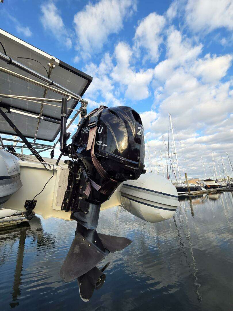 - Dinghy Package: Heavy-duty arch system (over $10k value), Highfield CL340 tender, and a 20HP outboard (with power start/tilt). The tender also includes its own Garmin 9-inch chartplotter with full navigation, depth, and fish finder (value of around 15k).