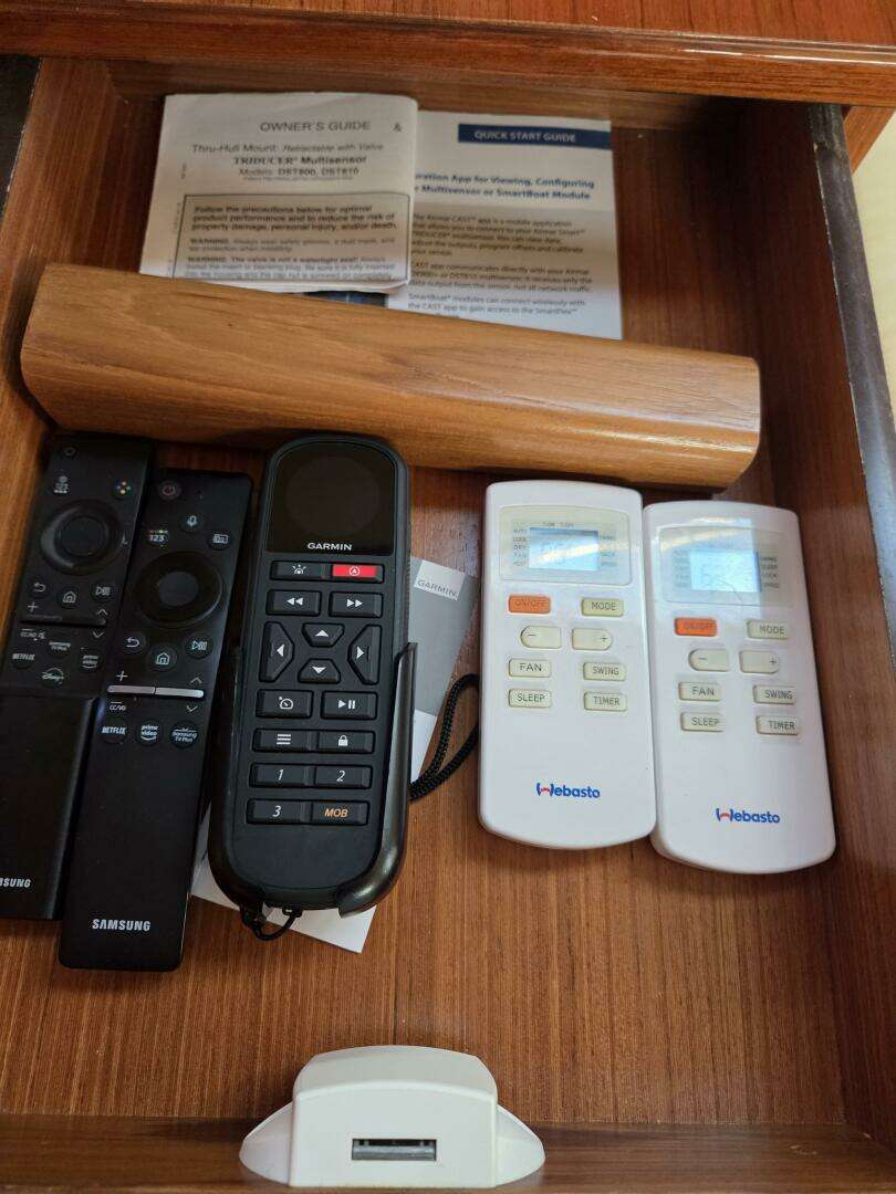 - Electronics & Entertainment: Full Garmin electronics suite with AIS (send and receive), Cortex VHF Radio with smart AIS and handheld, Starlink, and an upgraded 8 speaker Fusion sound system with multiple remotes throughout the boat.