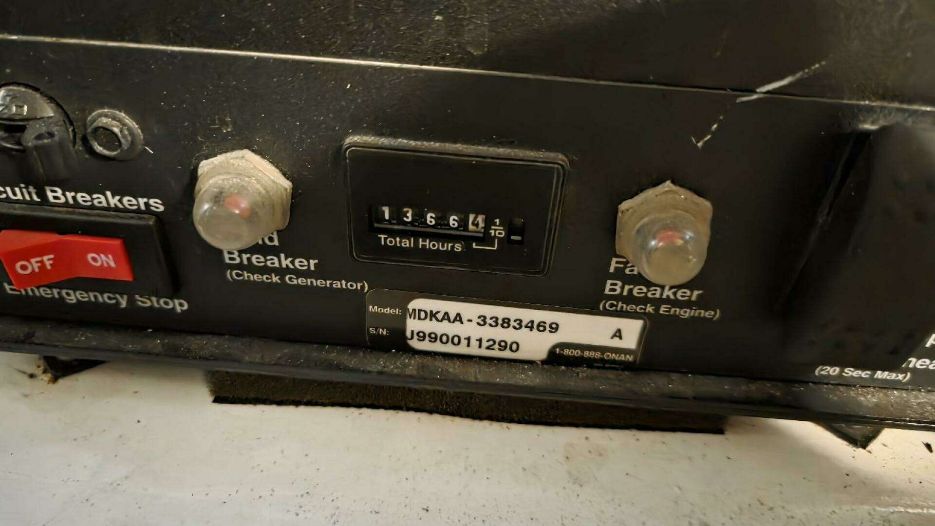 Electrical power away from the dock is supported by an Onan MDKAA 9 kW diesel generator, currently showing approximately 1,366 hours, allowing operation of onboard systems including air conditioning and galley appliances while underway or at anchor.