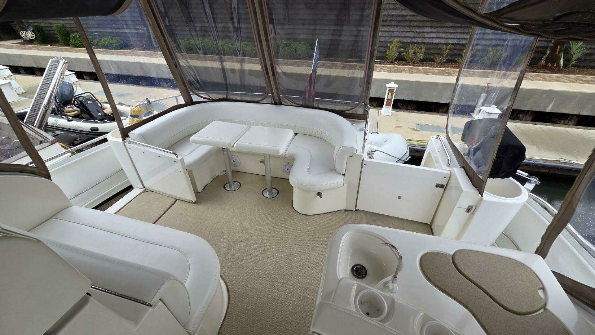 In 2019 the cockpit upholstery and flooring were replaced, giving the space a refreshed and modern appearance. The cockpit is protected by a full canvas top with isinglass enclosure, allowing the area to be enjoyed comfortably in a wide range of weather conditions.