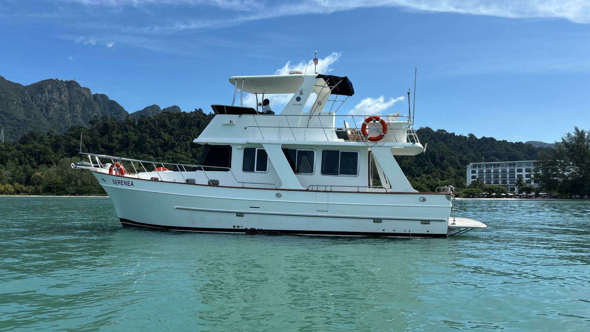 A proven bluewater companion, Serenea is a 2013 Explorer 40 Sedan designed and built for serious coastal and offshore cruising. With a solid GRP hull, wide side decks, and a hardtop over both the aft cockpit and flybridge, Serenea offers confidence and comfort in all conditions.