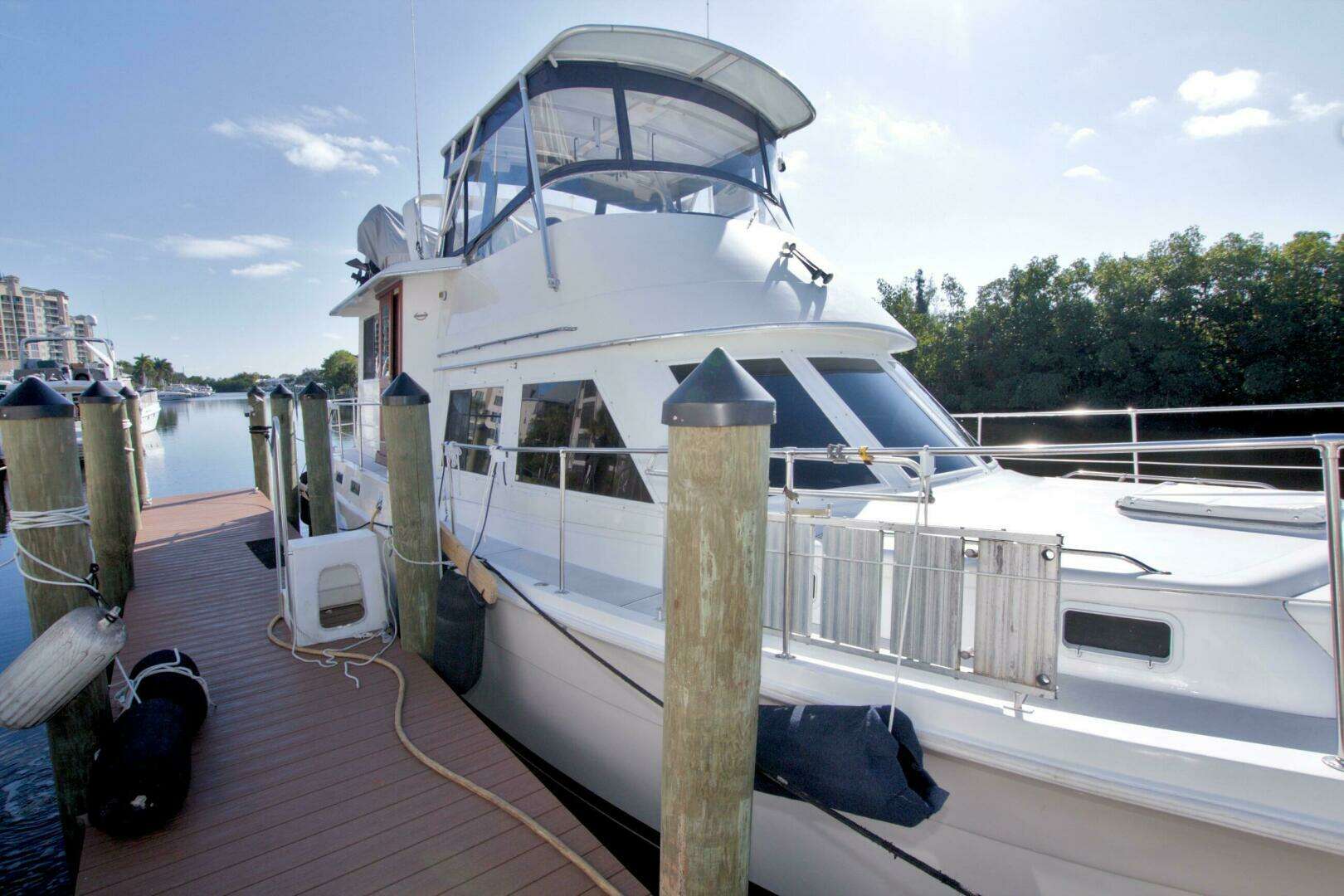 Exceptional long-range cruiser and one of the best liveaboard yachts in her class. Powered by twin 300hp Caterpillar 3208 diesels, she runs efficiently at 8-knot trawler speeds with the capability to cruise 12–15 knots. Built to Gulfstar’s strong construction standards, she features full walk around decks and fully enclosed, air-conditioned sundeck/upper salon that sets her apart.