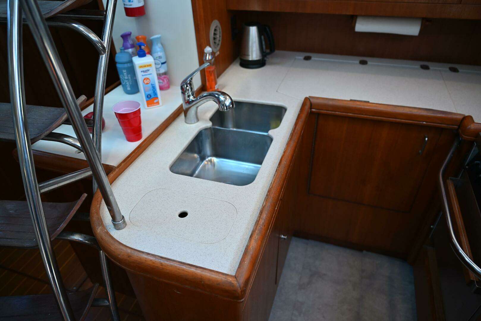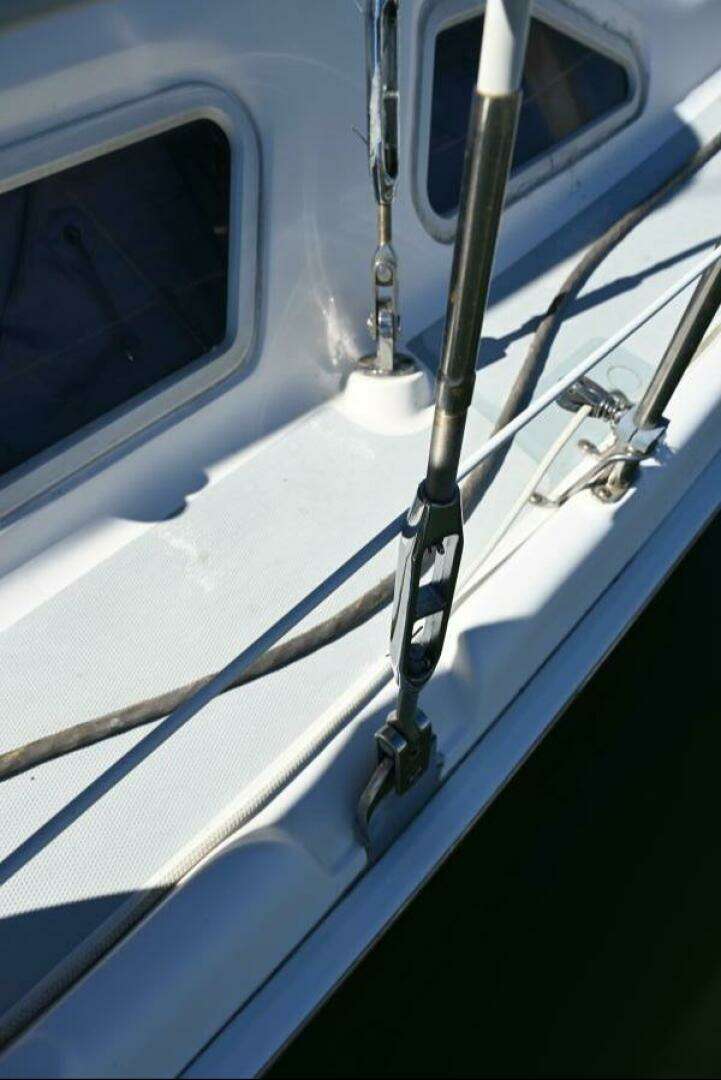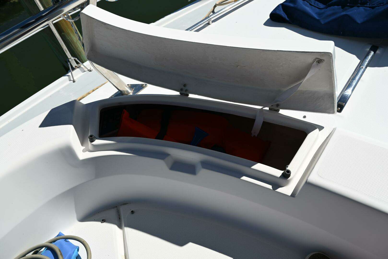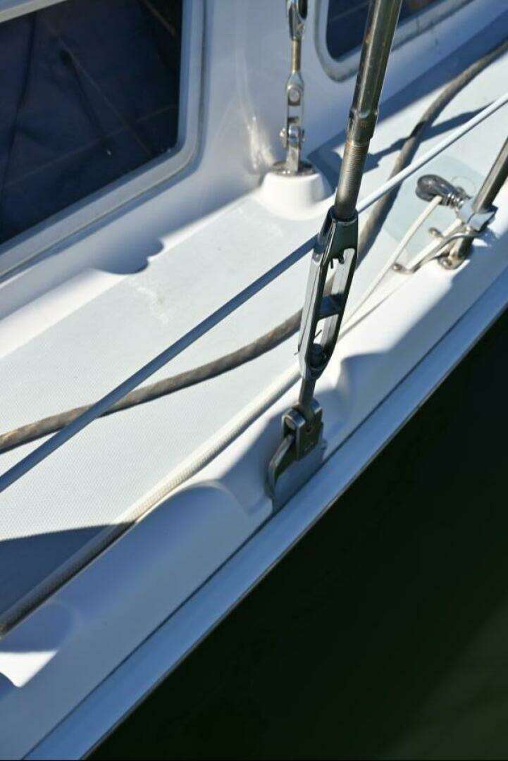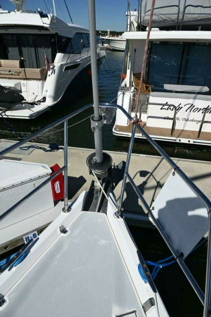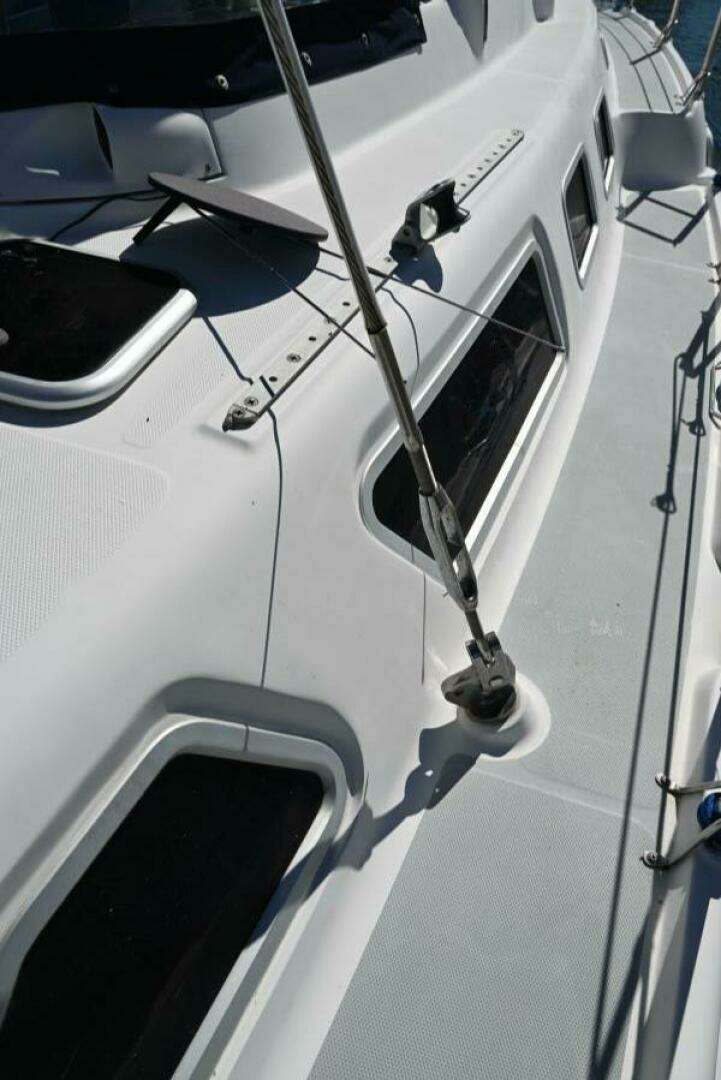 The Hunte 456 is a spacious center-cockpit, a popular coastal cruiser or liveaboard and is a moderate displacement design with a modern underbody featuring a bolted antimonial lead keel and a spade rudder.