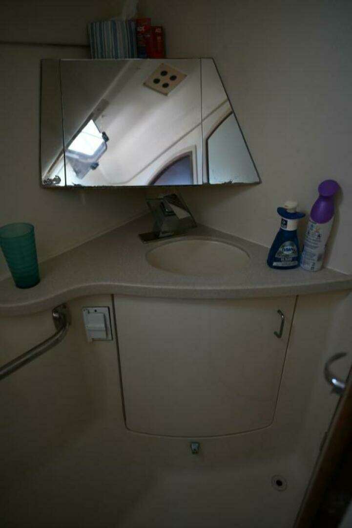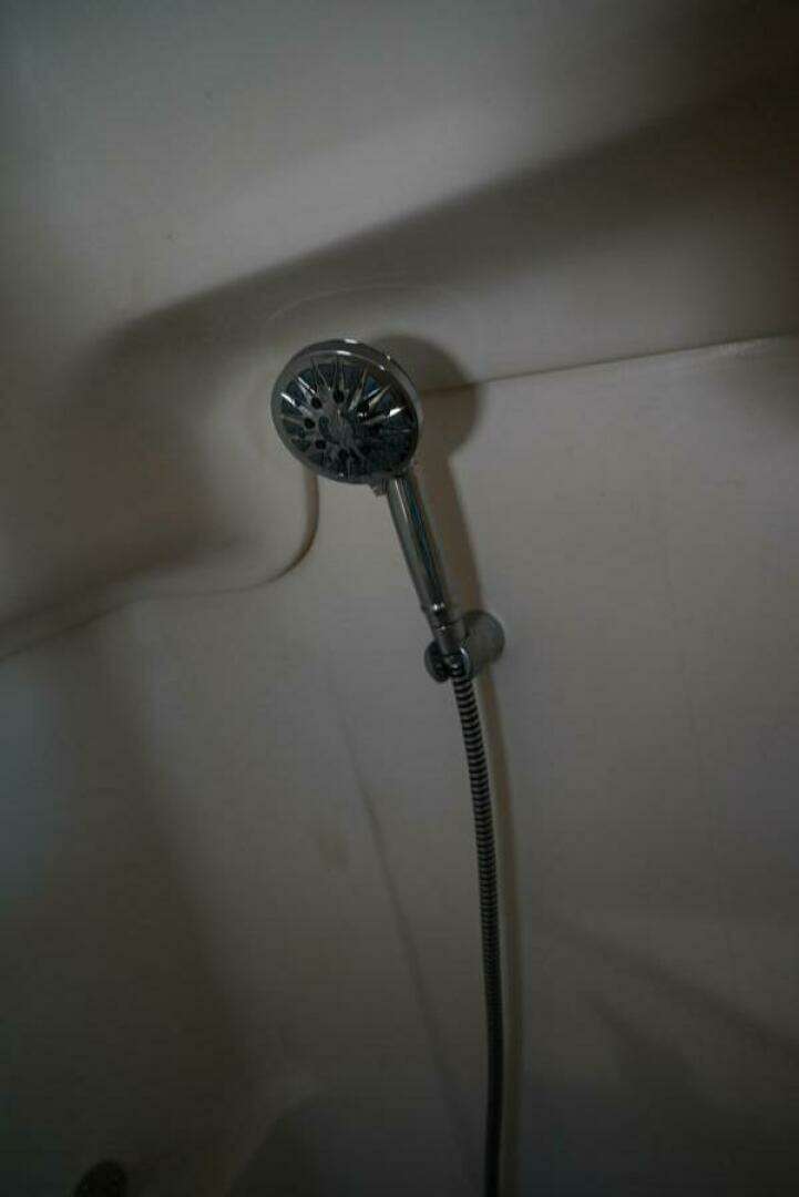 3 bathrooms with 2 showers with a bathtub in the master stateroom