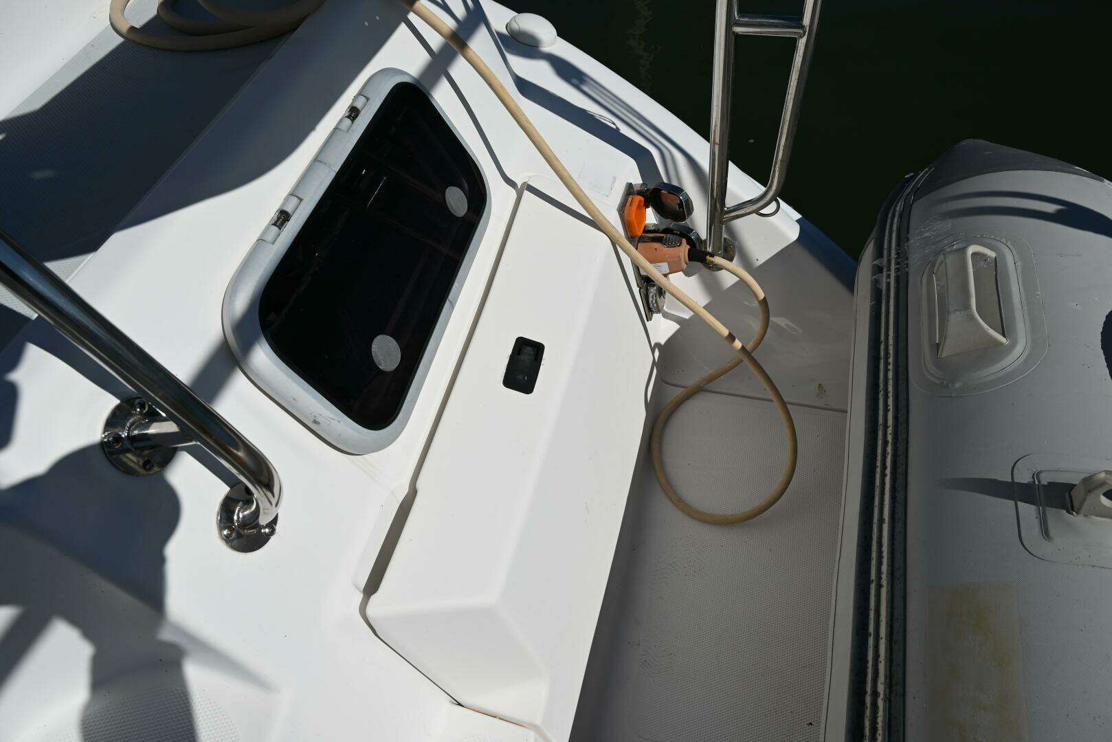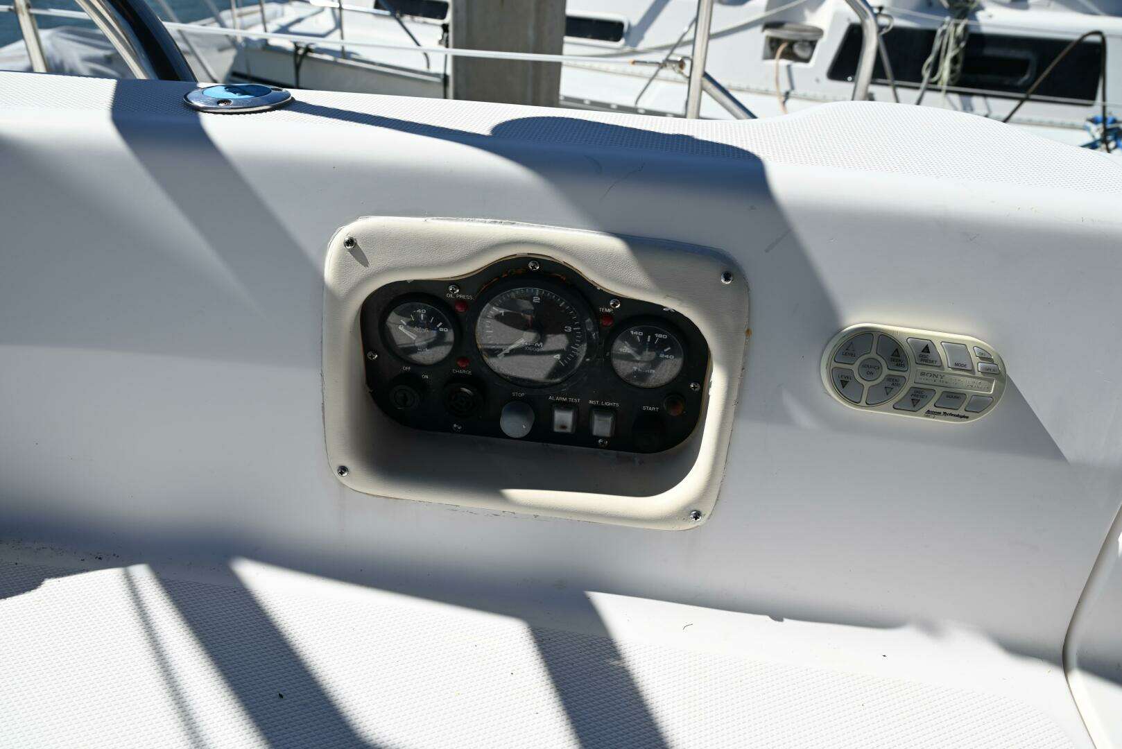 Yanmar 4-cylinder turbocharged engine with less than 500 hours serviced 2 years ago. Boat motors at 9-10 mph sipping 5 gallons of diesel per hour. 100 gallon diesel fuel tank.
