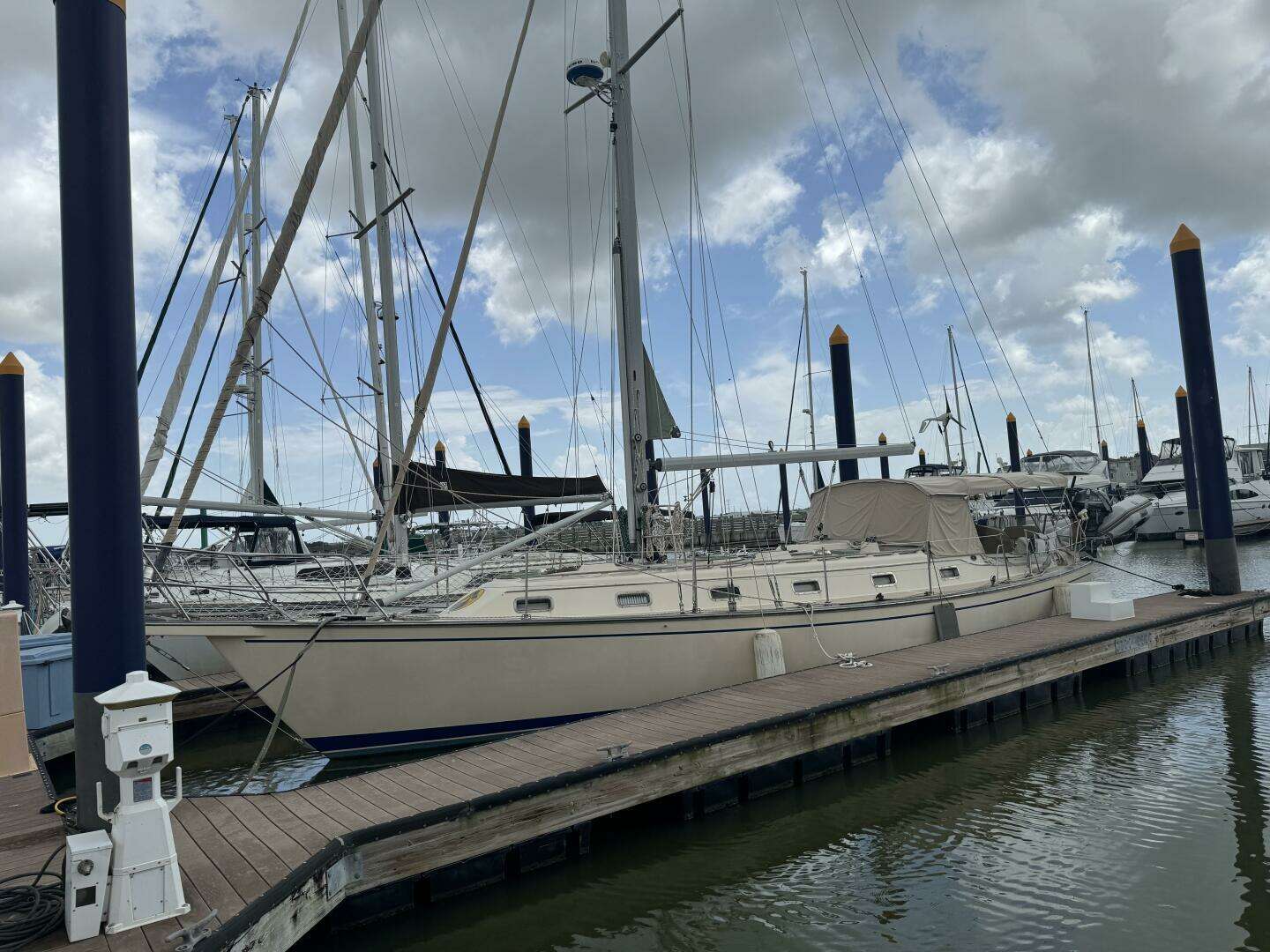 Notable Upgrades: Recent Upgrades and Maintenance Items: Chainplates replaced 2019 Standing rigging replaced 2019 Running rigging replaced 2019 All new wiring in mast and all new mast led lights in 2019 Replaced waste holding tank around 2013 MaxProp 3-blade Feathering Prop 2021 NEMA 2000 backbone, multi-sensor, AIS, instruments, and radar 7.8K 2019 |