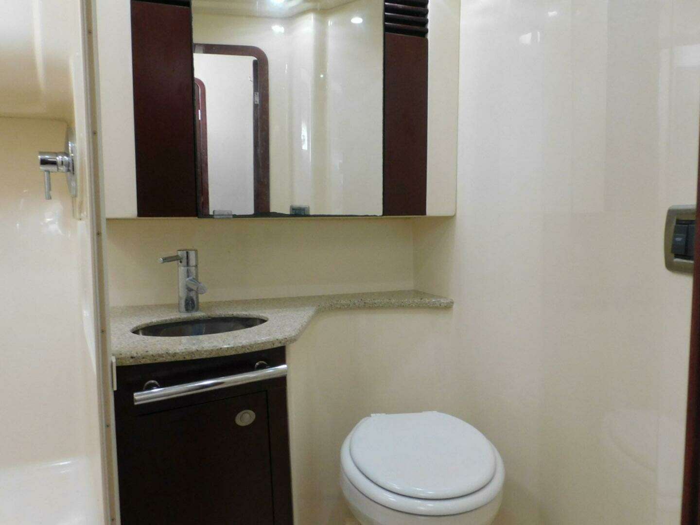 Below, a guest cabin to port has twin single beds, while the forward master stateroom features a queen-sized island berth.