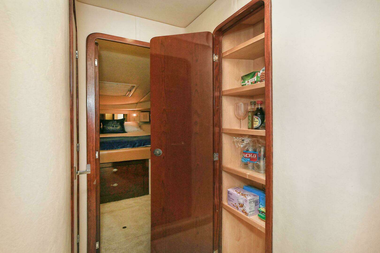 Master Stateroom is forward with private head and shower.. Storage all around with his and hers hanging lockers.