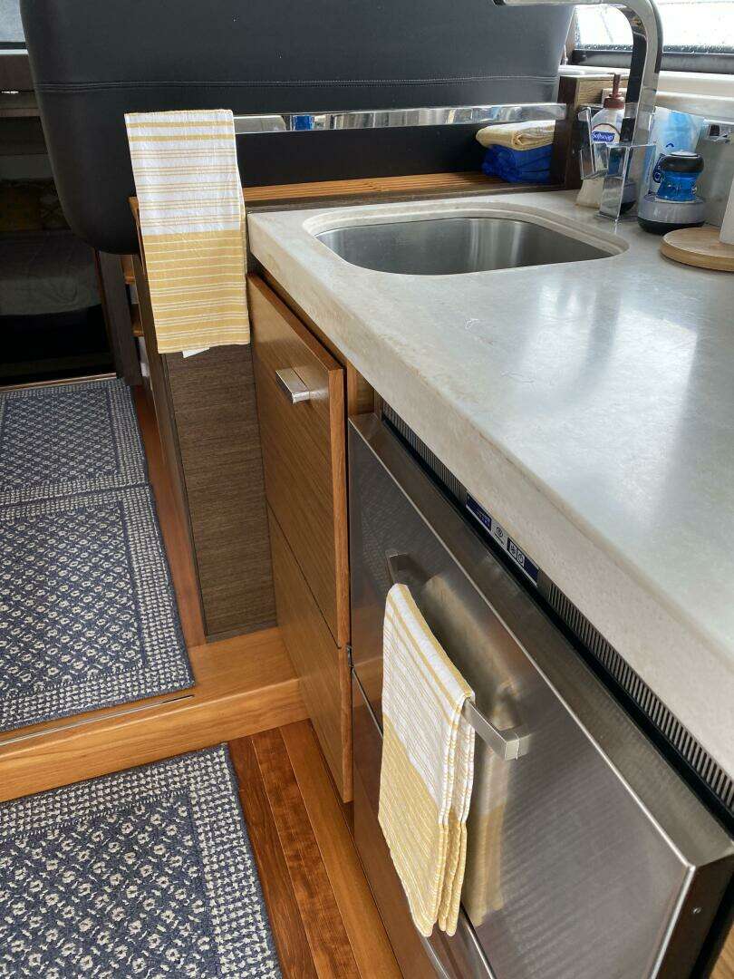 Additional upgrades including a Garmin 800 AIS Transceiver, Garmin OnDeck Boat Monitoring, Newer Solid State Doppler Garmin GMR Fantom 54, Spare Volvo IPS T3 Propeller Set on a custom mount in engine room, Milwaukee Packout tool and storage units in engine room, Apple TVs on Salon, Master, & Guest TVs, Additional Dometic Refrigerator/Freezer in Lazarette, and an AB Dinghy with ePropulsion electric outboard are a part of the sale!