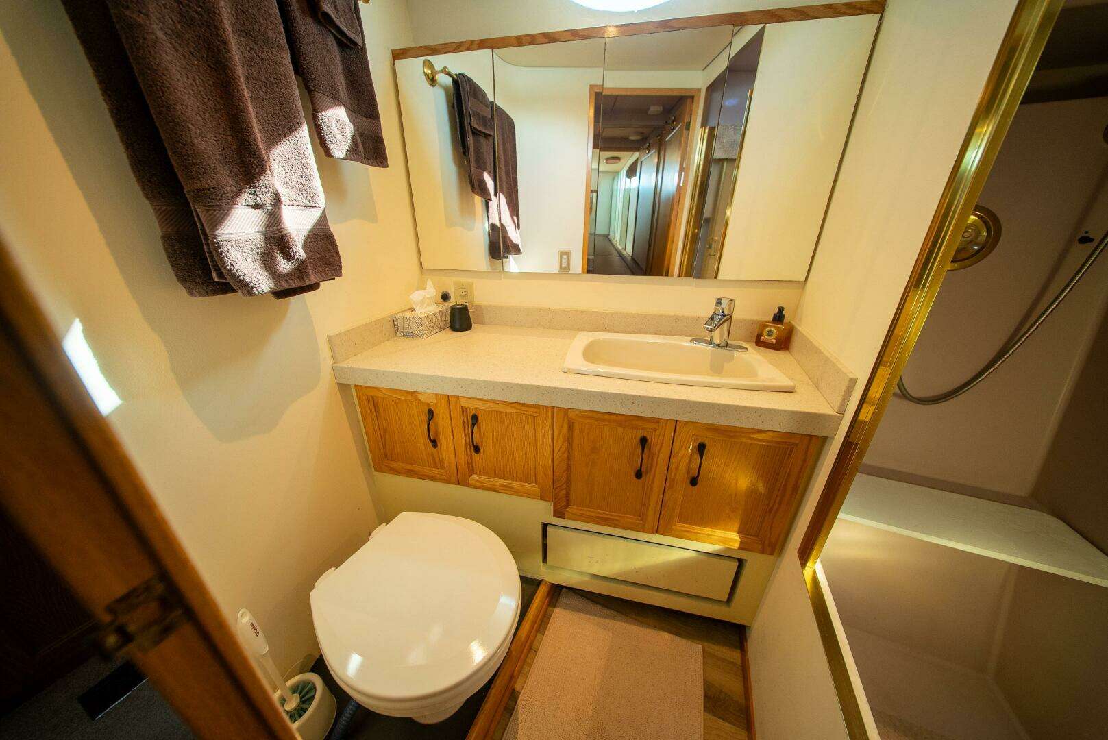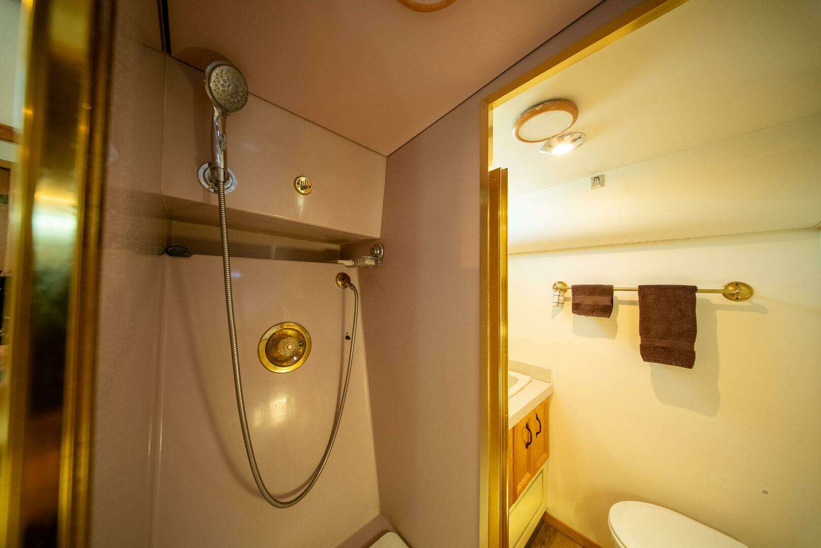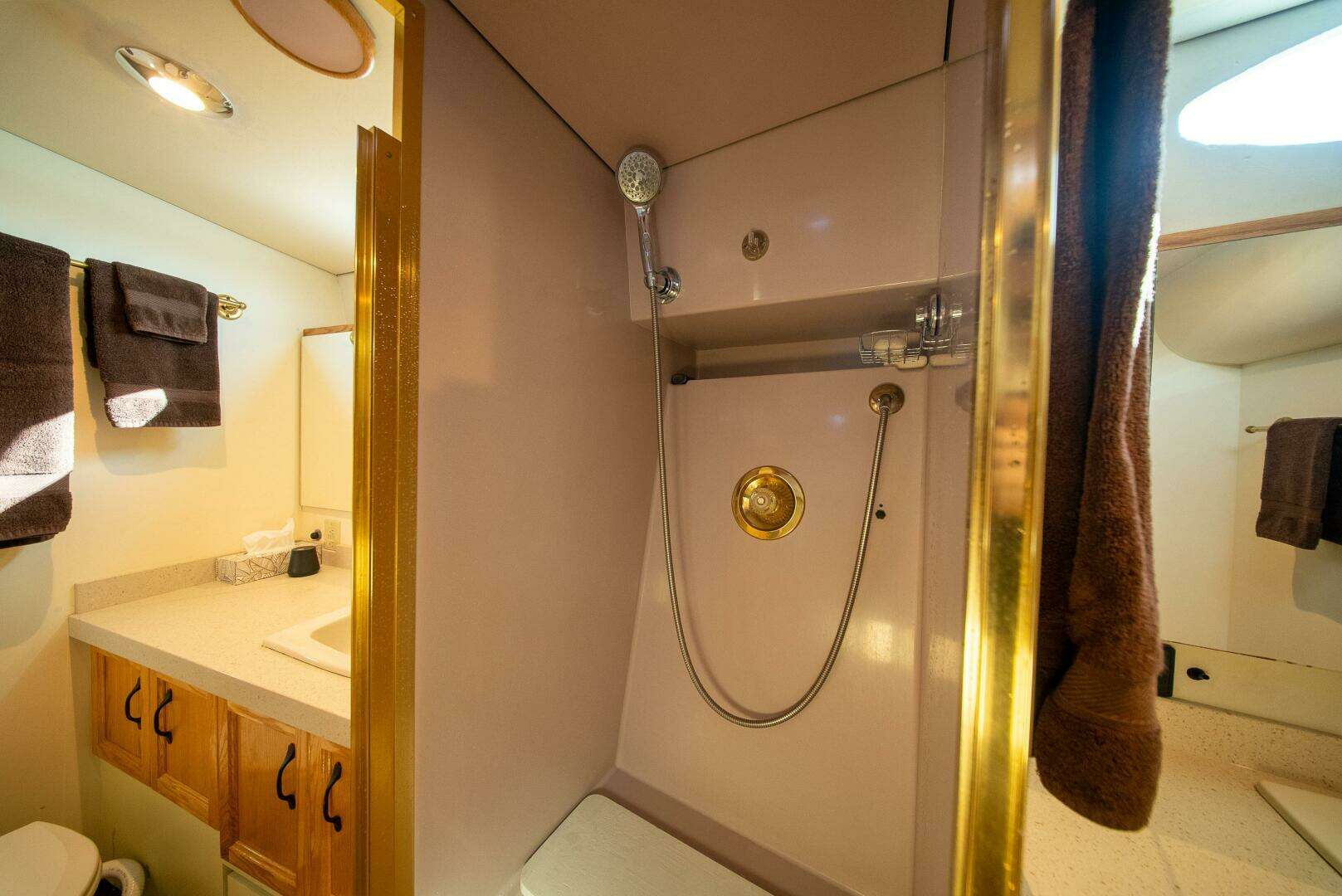 The guest and master head are both nicely finished and upgraded with the recent refit. The two heads both have access to a good sized shower located in between the two spaces.