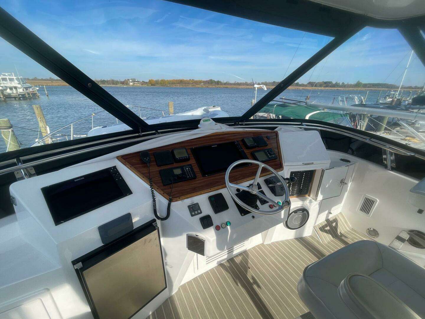- Flybridge Luxury: Dual helm chairs, wraparound guest seating, and a built-in fridge for effortless hosting.