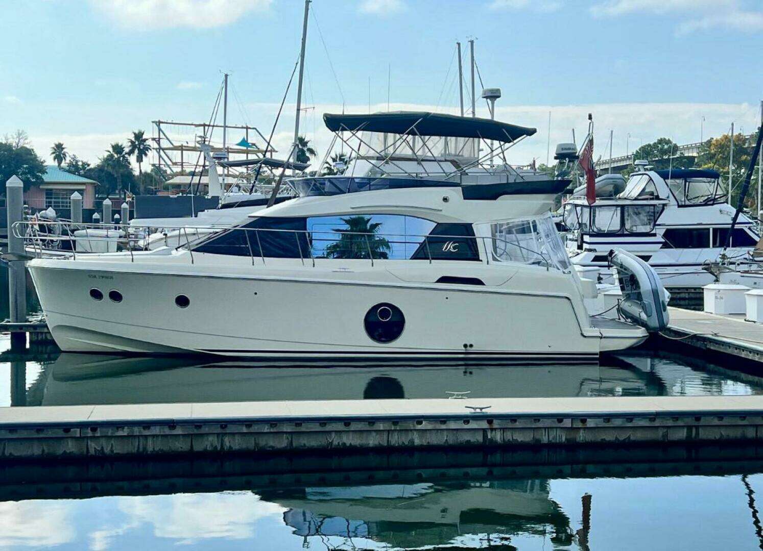 SEACREST is a Beneteau Monte Carlo 4 (MC4) 45 foot luxury flybridge motor yacht known for its, elegant, timeless Italian design and efficient, stable performance. Powered by twin Volvo Penta IPS 500 engines with just 915 hours, it offers a, cruise speed of roughly 25 knots and, easy, joystick docking. The vessel features a, spacious, light-filled, single-level, main deck, a large flybridge with a sun lounge, and two, upscale, en-suite, cabins, making it ideal for, comfortable, cruising. SEACREST is a 3 owner boat that has been impeccably maintained and updated, including new Pods in August 2025 that are under warranty until August 2027. She is a GREAT LOOP veteran, having just completed her journey in March 2026 and is ready to go again. The owners have included a large inventory of boating gear (see the Misc. section in Descriptions). Pack your clothes and this boat is ready to cruise!