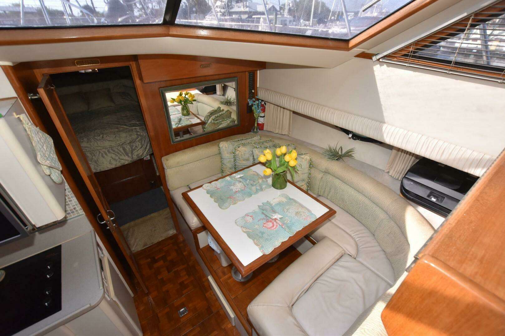 The two (2) stateroom layout has a centerline queen berth in the bow. There is a head and shower forward as well. The galley is down and a dinette is across. The large salon is up. The aft cabin has a walkaround queen berth as well as an ensuite head and shower. The salon has a double sofa bed and 24" Flat-Screen Television. A U-Line icemaker is on the aft dec. The aft deck has full enclosure and wet bar.
