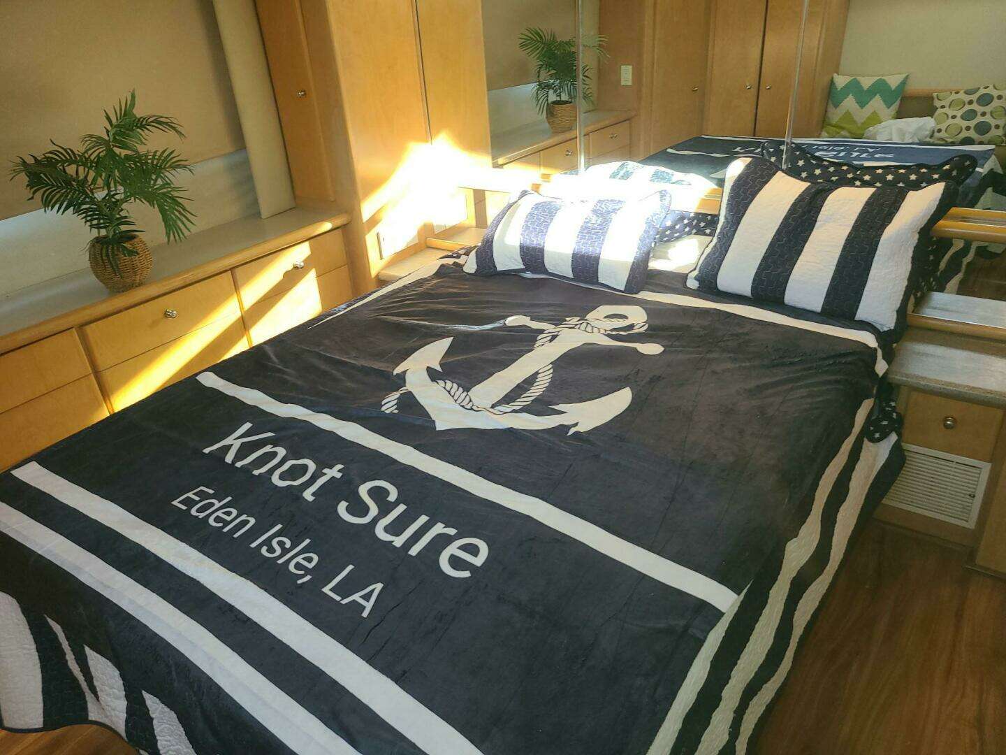 "Knot Sure" is moored in Eden Isles, Louisiana, which is around 40 miles/50-minute drive from the New Orleans International Airport (MSY). The vessel's location is marked on the Google Map at the bottom of the listing.