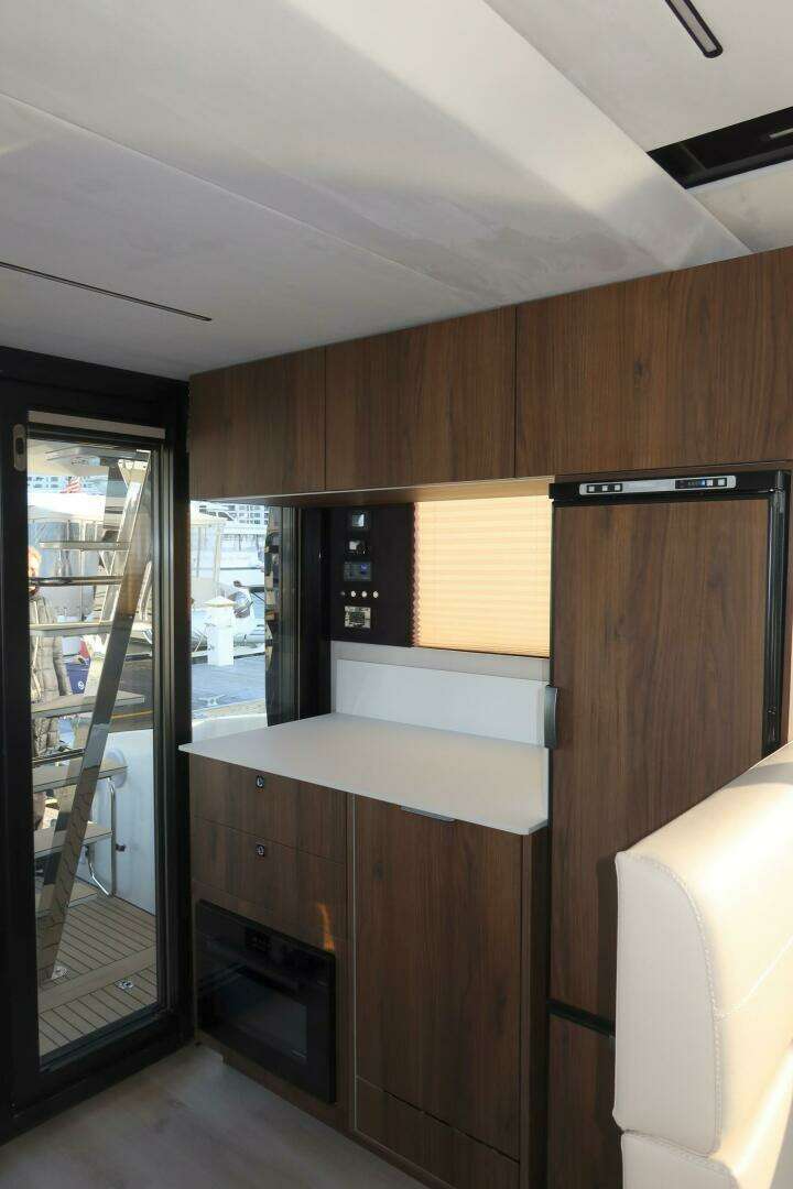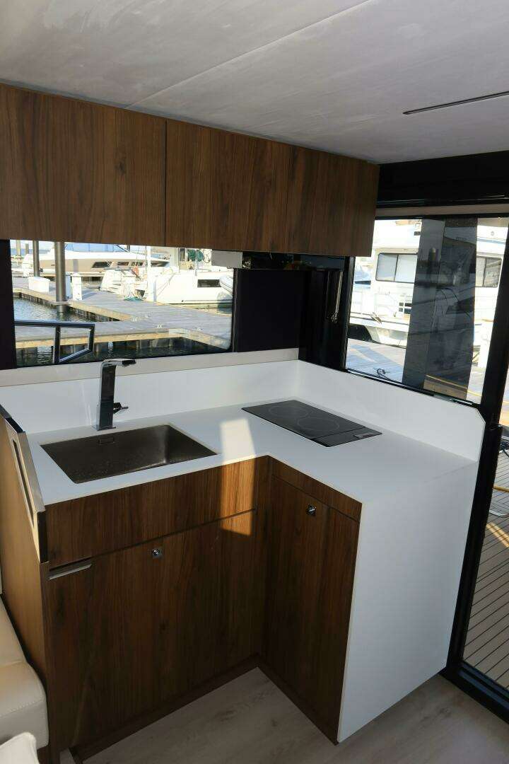 Enjoy easy access and enhanced safety with a dedicated captain's door on the starboard side. The thoughtfully designed half-galley layout offers convenient socializing and functionality, perfect for entertaining guests. With a shallow draft of just 2 feet 11 inches, this yacht is ideal for exploring shallow waters and secluded coves.