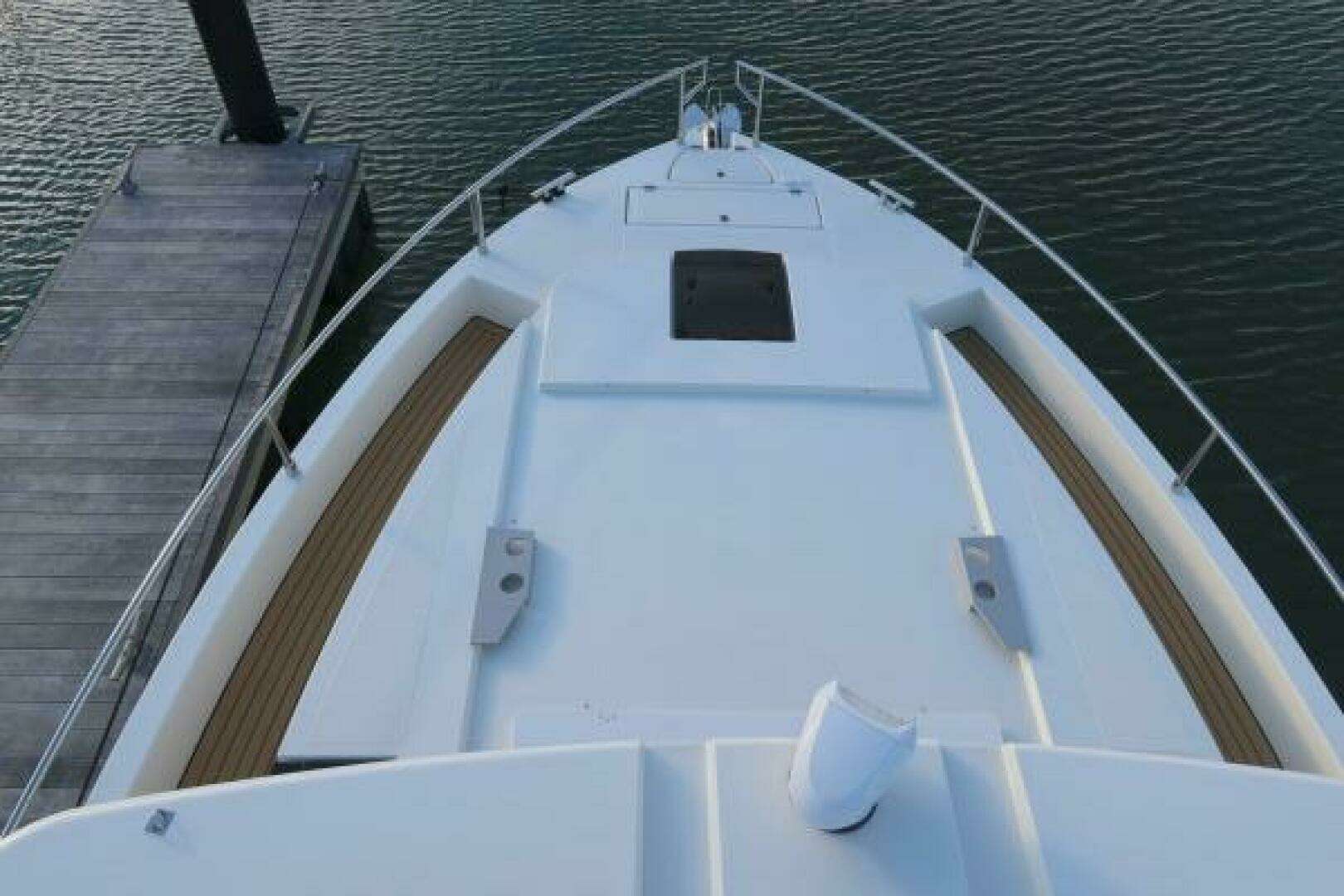 Outdoor living is elevated with a barbecue on the spacious flybridge, providing an ideal setting for al fresco dining and gatherings. The sleek three-cabin layout, complemented by two full heads, offers luxurious comfort and privacy for owners and guests alike.