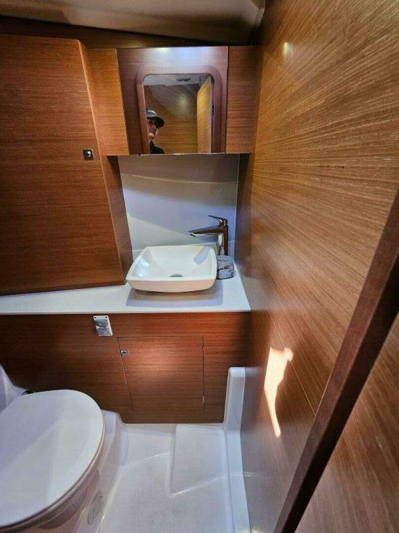 Powered by an efficient rig with easily handled self tacking Jib, and a reliable Volvo D2-75F inboard engine, delivering 55horsepower, she promises thrilling sailing and comfort in most conditions. The engine, with only 505 hours of use, isequipped with a durable bronze 3-blade propeller, enhancing maneuverability and efficiency.