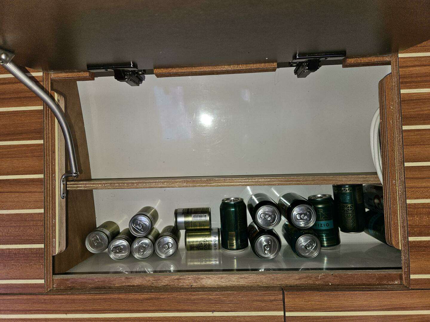 - - Cubby-hole along hull liner with fiddle.