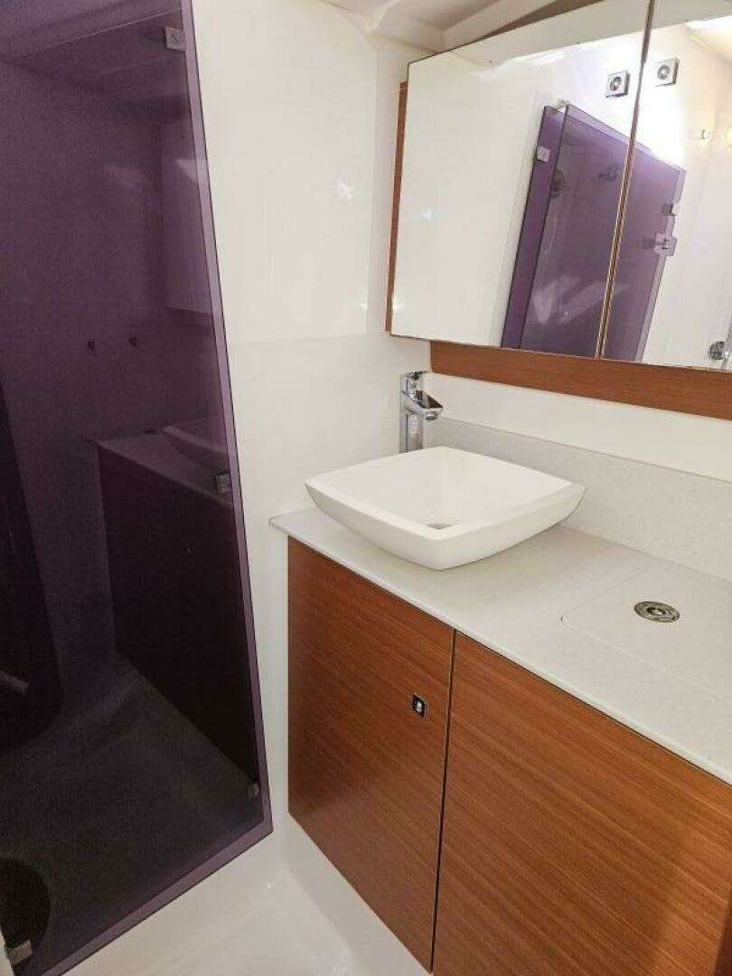 - Ample interior storage throughout the cabins, galley, and saloon