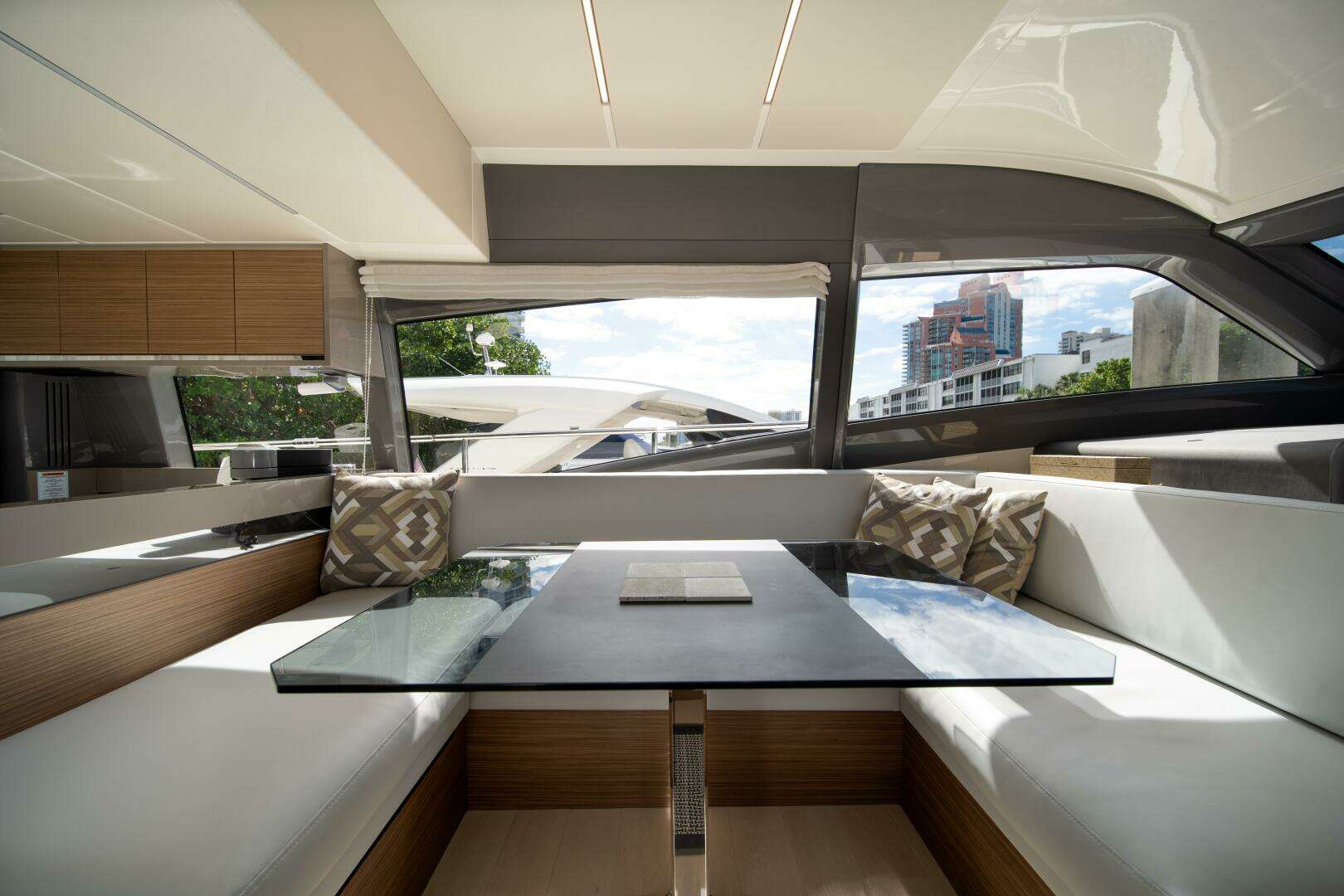 This Ferretti 450 FLY features a bright, contemporary interior with ample natural light, spacious flybridge ,and elegant living spaces designed for entertaining or extended cruising.