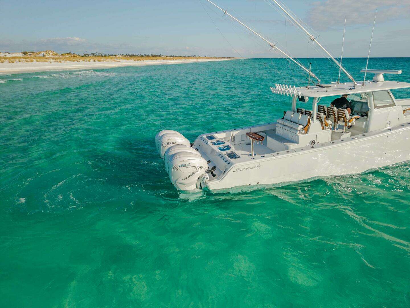 “Just Lookin” is an exceptionally clean and well-maintained 47’ Freeman, currently located in Panama City Beach, Florida and truly ready to go with no compromises. Powered by reliable 425 Yamaha outboards and backed by extended warranty coverage through December 7, 2030, this vessel is engineered for impressive speed, serious offshore fishing, and a smooth, comfortable ride home no matter the conditions.