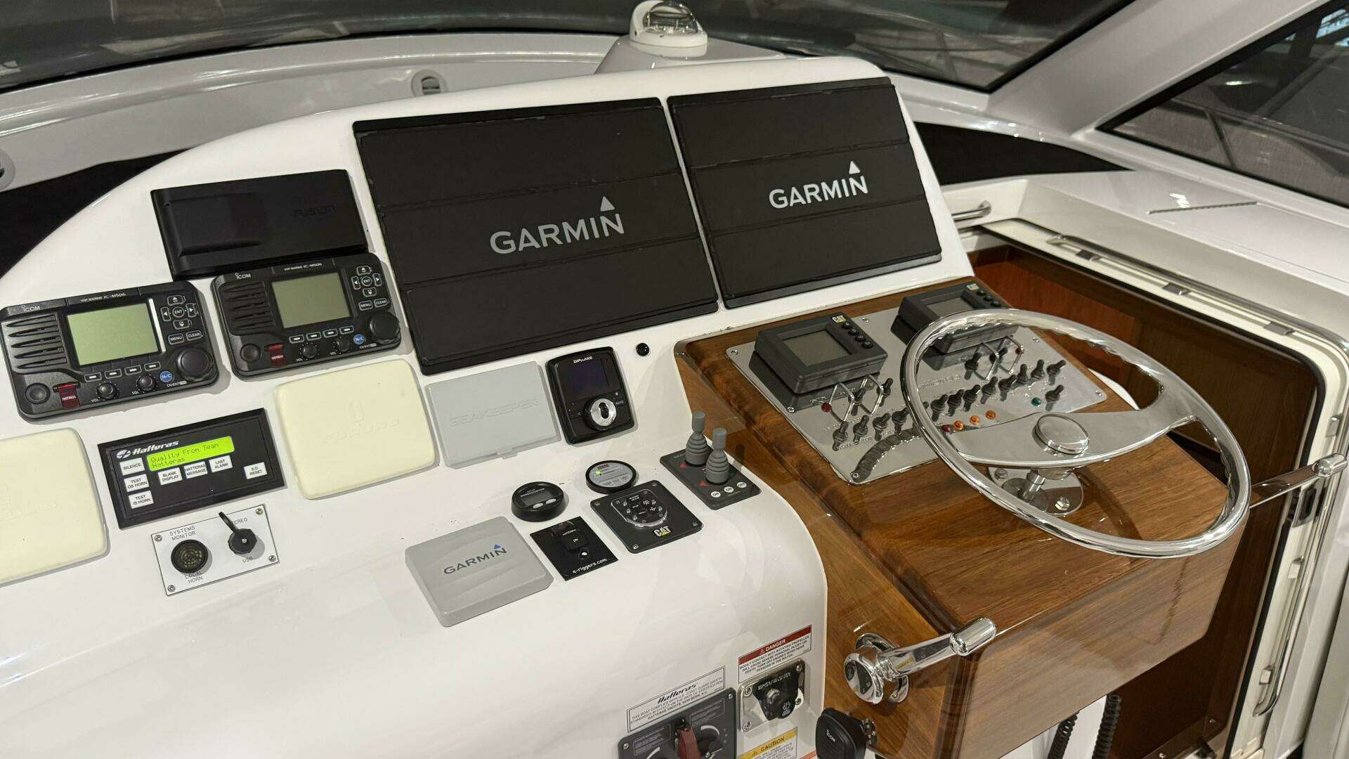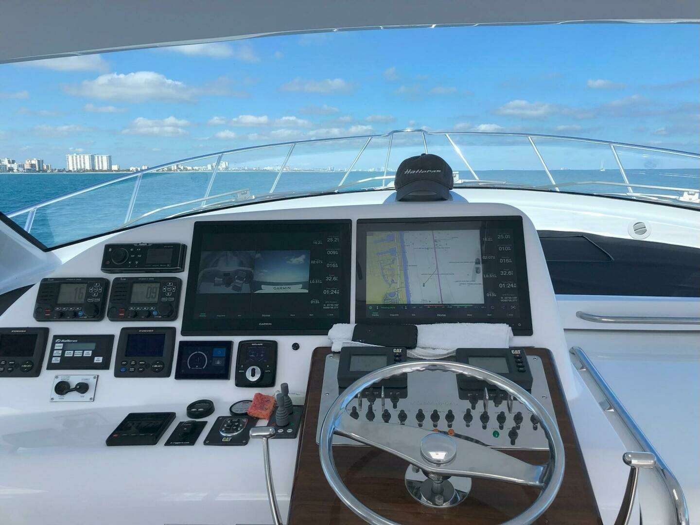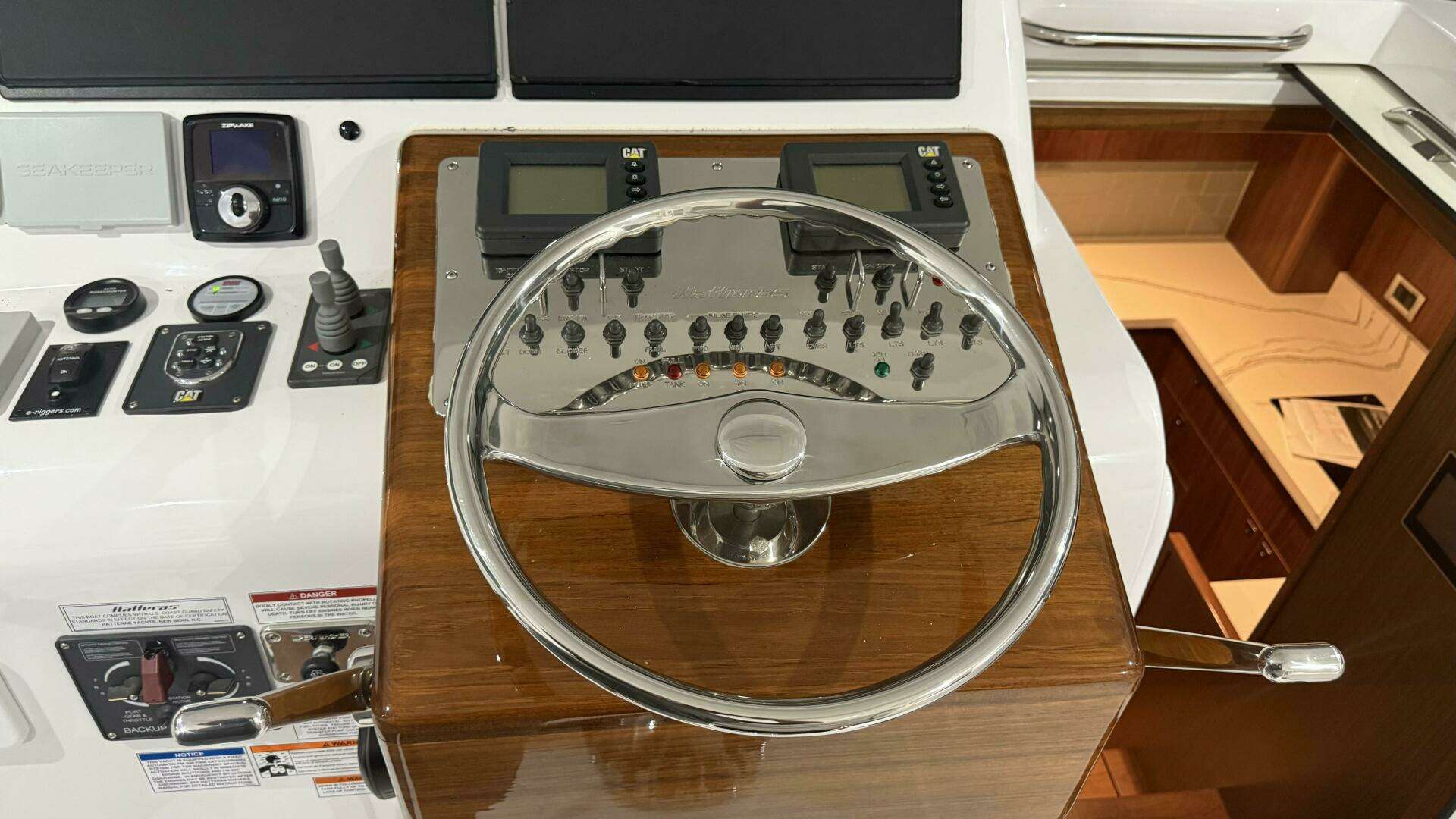 • Palm Beach style helm with single lever electric controls and steering wheel