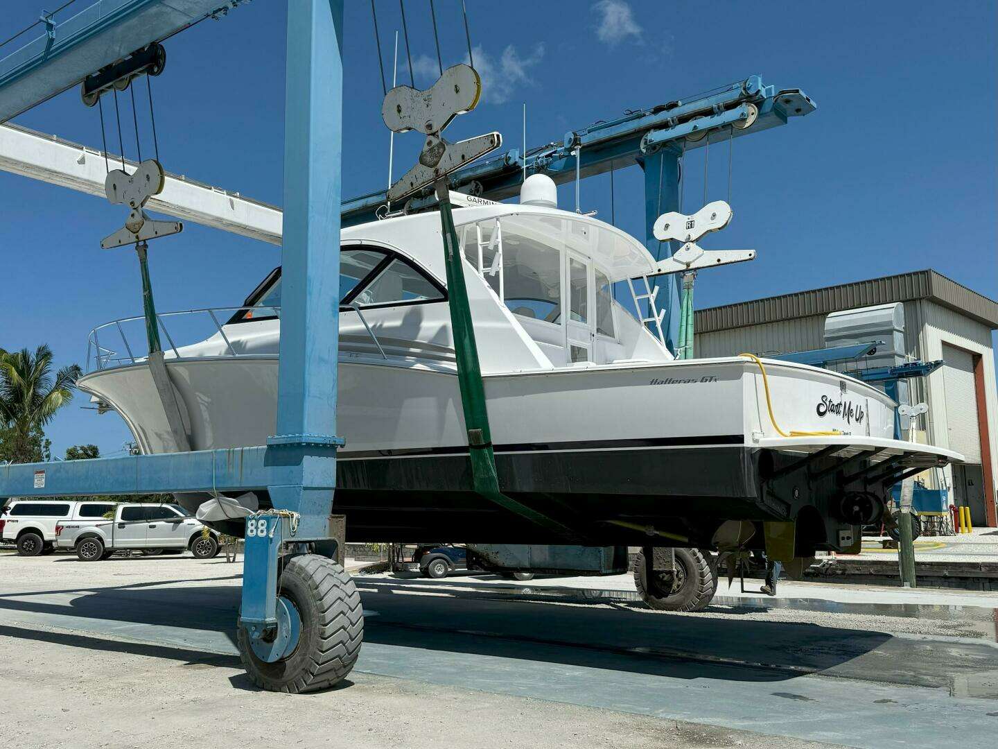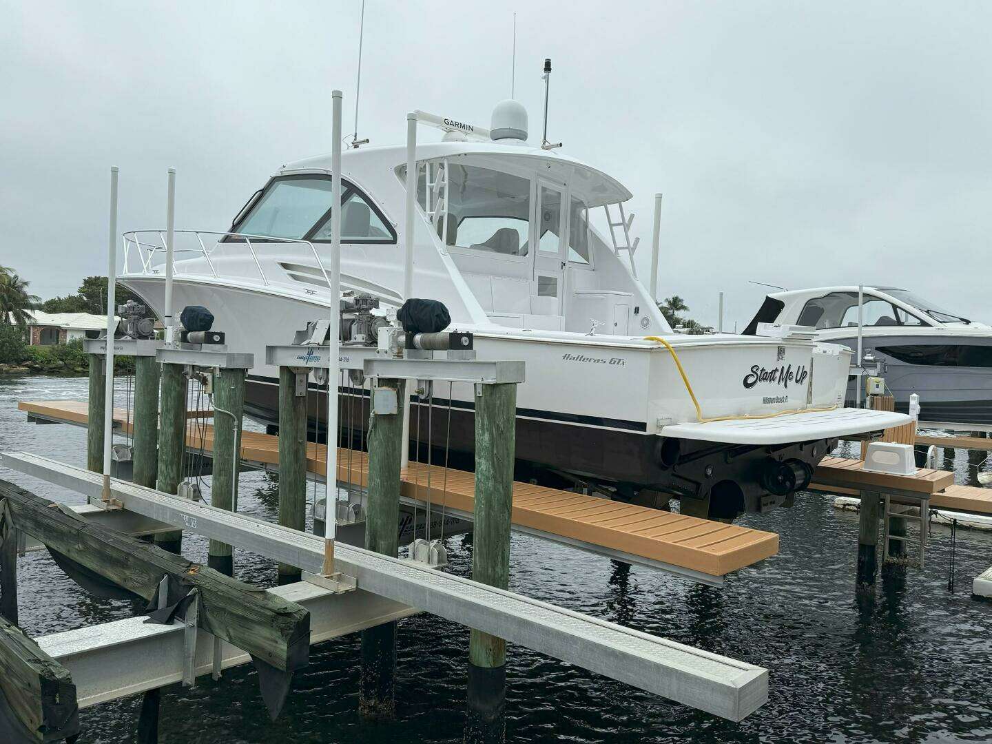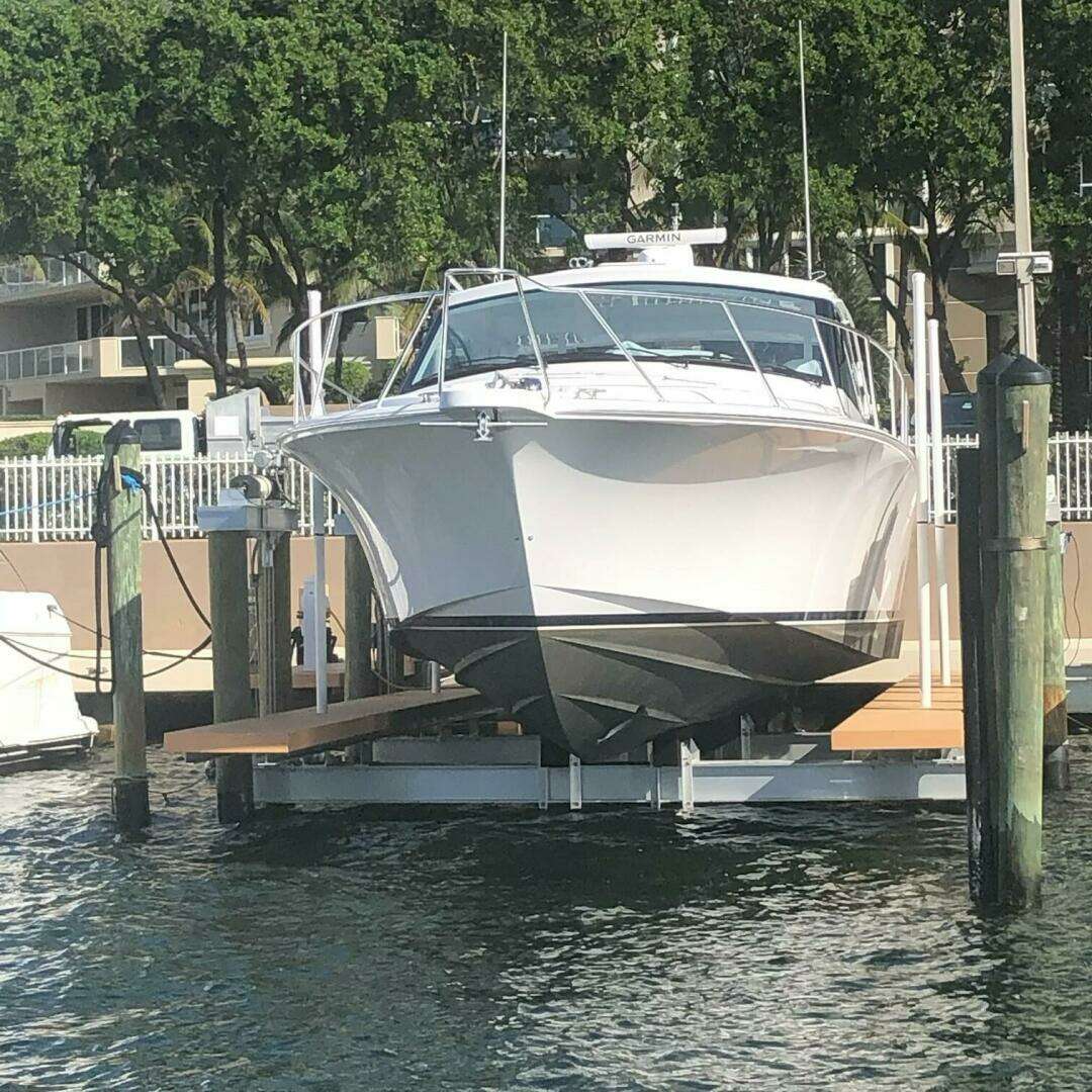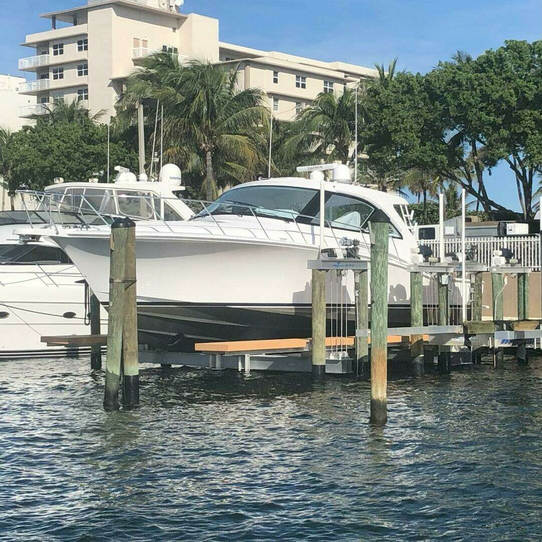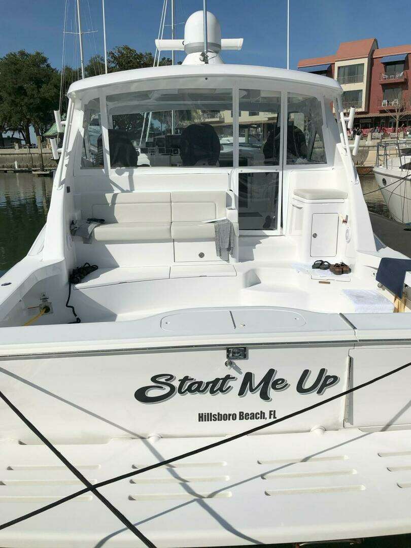 "Start Me Up" is a beautiful one owner 2020 Hatteras GT45 Express. She was custom built for cruising SW Florida and the Bamahas. She has been stored a custom built lift from December to June each year and in a CAT 5 indoor building in Stuart, FL from June until December. She is loaded with many standard, optional and custom features. A few highlights include only 532 hours on her Caterpillar C-18 Acert, 1135 bhp diesels, Seakeeper 6 Gyro Stabilization System, watermaker, full three sided air conditioned hardtop express, 3 Stidd helm chairs, two stateroom / one head layout, custom framed door built into the aft acrylic enclosure, Garmin electronics package, natural walnut interior wood, swim platform, electric bow and stern thrusters, spare props and much more!