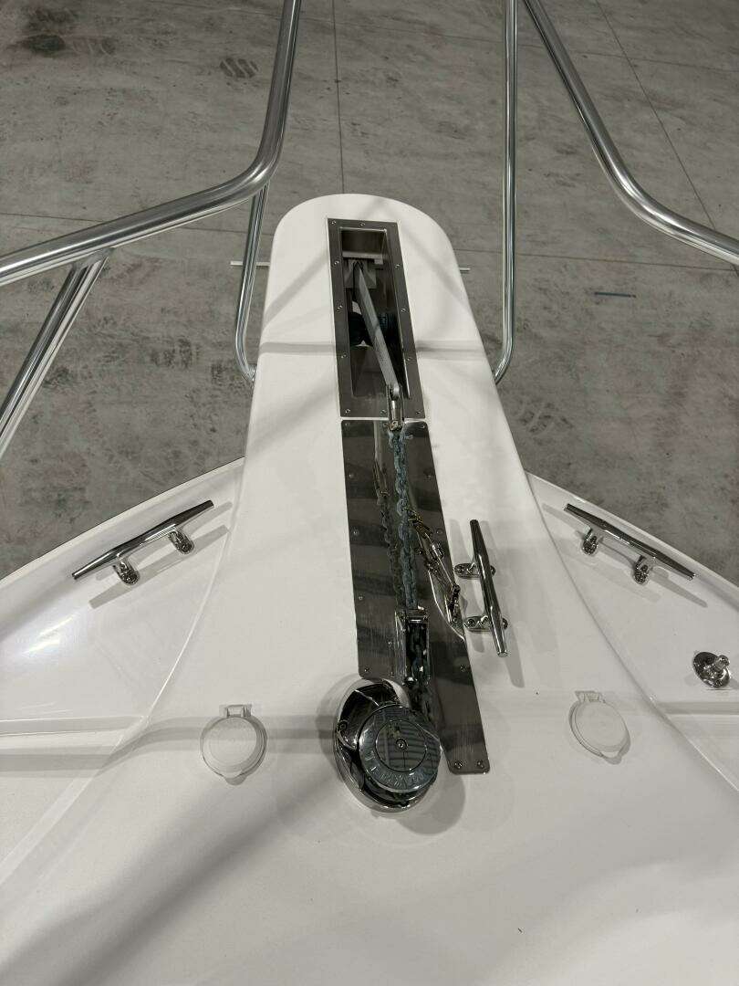 FIBERGLASS PULPIT WITH ANCHOR CHUTE AND WINDLASS, 1,700 POUND, 300' ALL CHAIN