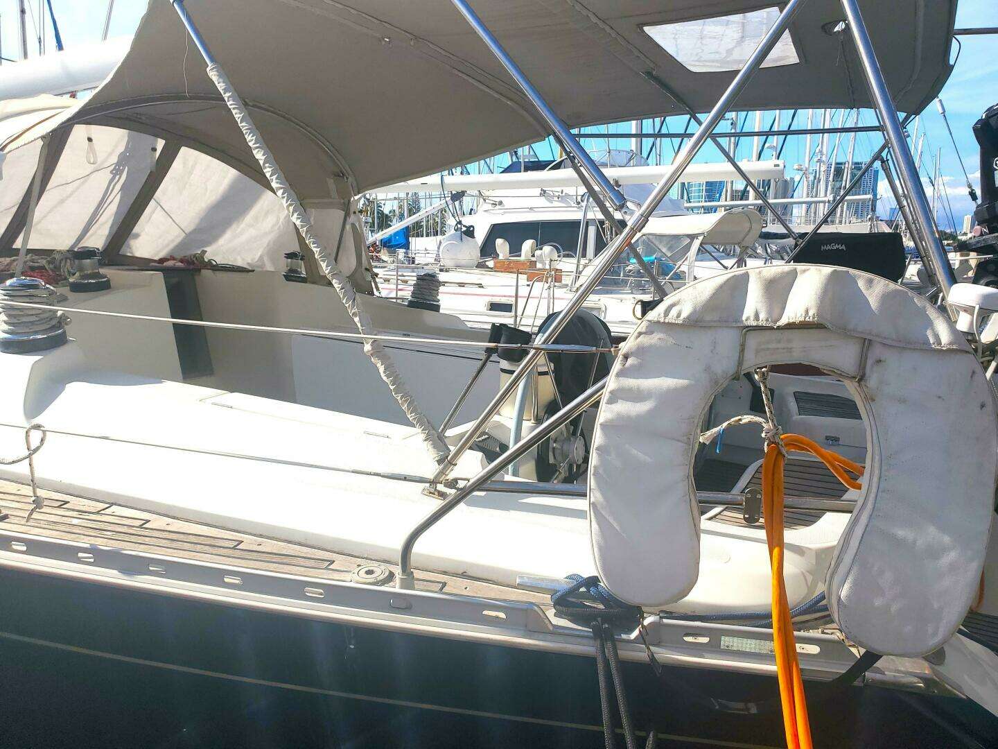 - Easy to Sail: Sloop rig with furling main/jib, adjustable Genoa tracks, and balanced helm for shorthanded sailing.