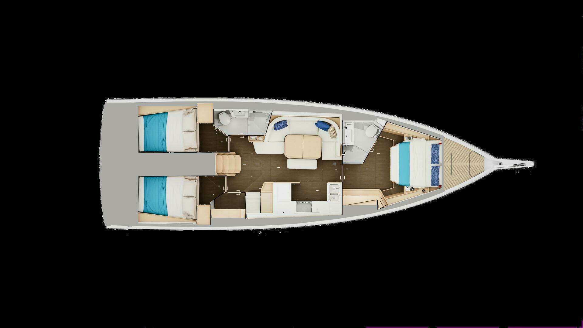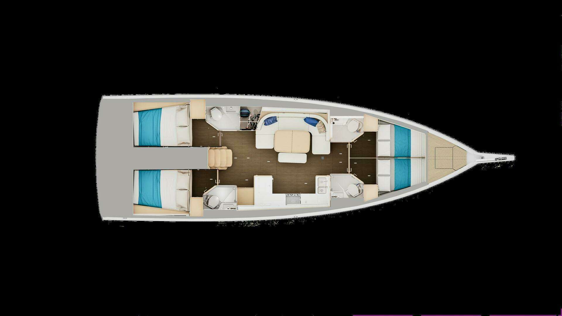 Elegant and seaworthy, this 45-foot sailboat combines power, comfort, and peace of mind. Easy to handle and safe in all circumstances, she features attractions for each person on board: sensations at the helm, an inviting atmosphere in the cockpit, and well-being on the interior.