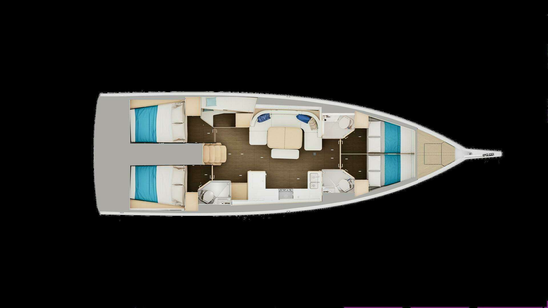 The Sun Odyssey 455 is distinguished by an elegant, new high-performance hull, as well as a well-balanced contemporary silhouette,designed to simplify sailing and enhance shared moments. Walkaround sidedecks eliminate steps,while ergonomic twin helms and a spacious cockpit transform each moment at sea into a safe, smooth experience. Each detail, from clever storage to robust materials, embodies Jeanneau's savior-faire,for higher performance, greater compfort,and durability.