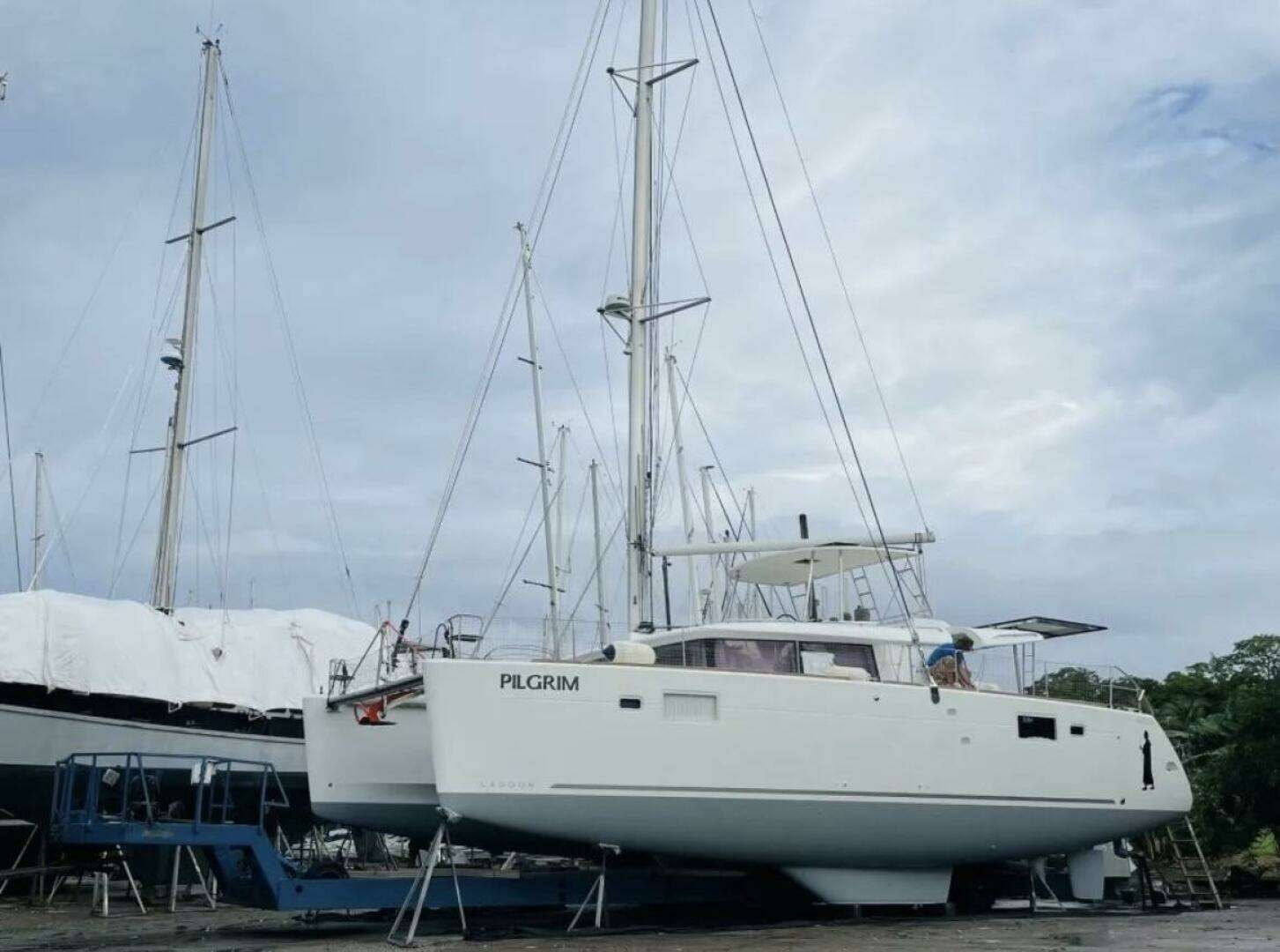 We have owned SV Pilgrim since January 2023 when we bought her from the original owners who had purchased her from Lagoon in 2018 and sailed her to the Caribbean in 2019. Once COVID19 started, the boat was stored on land so had very little usage/wear and tear and was in almost like new condition. The bulkheads were inspected (no damage) and reinforced with the Lagoon accredited procedure in Panama in August 2023.