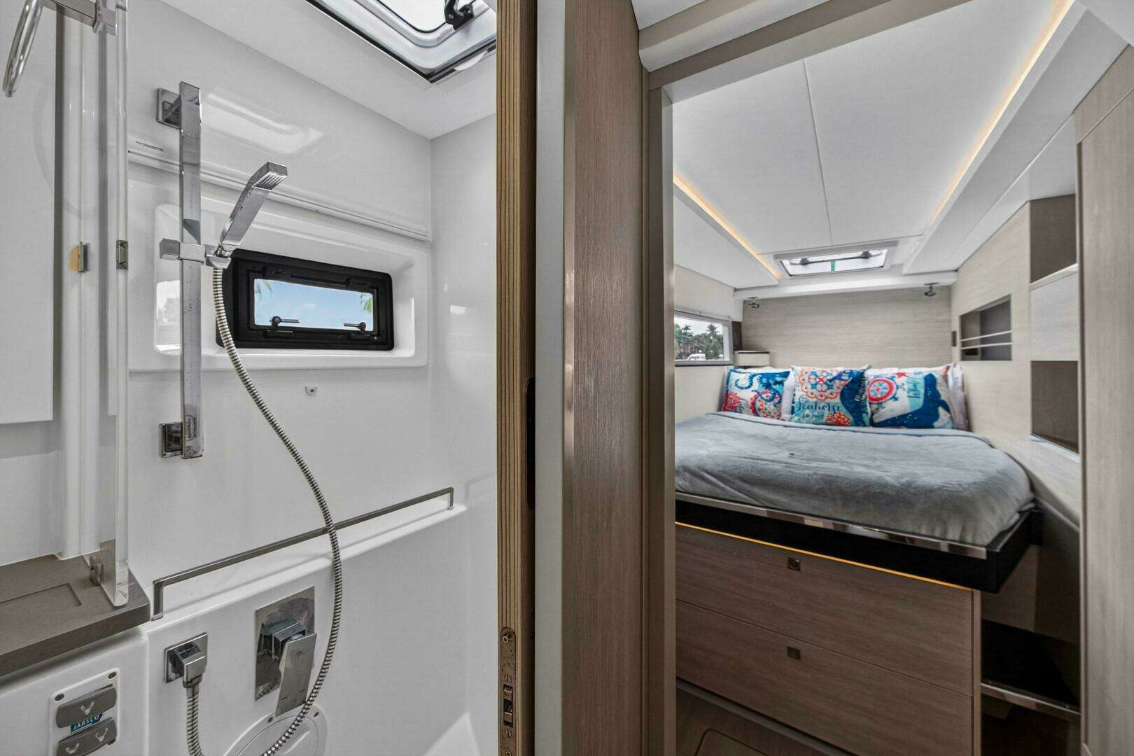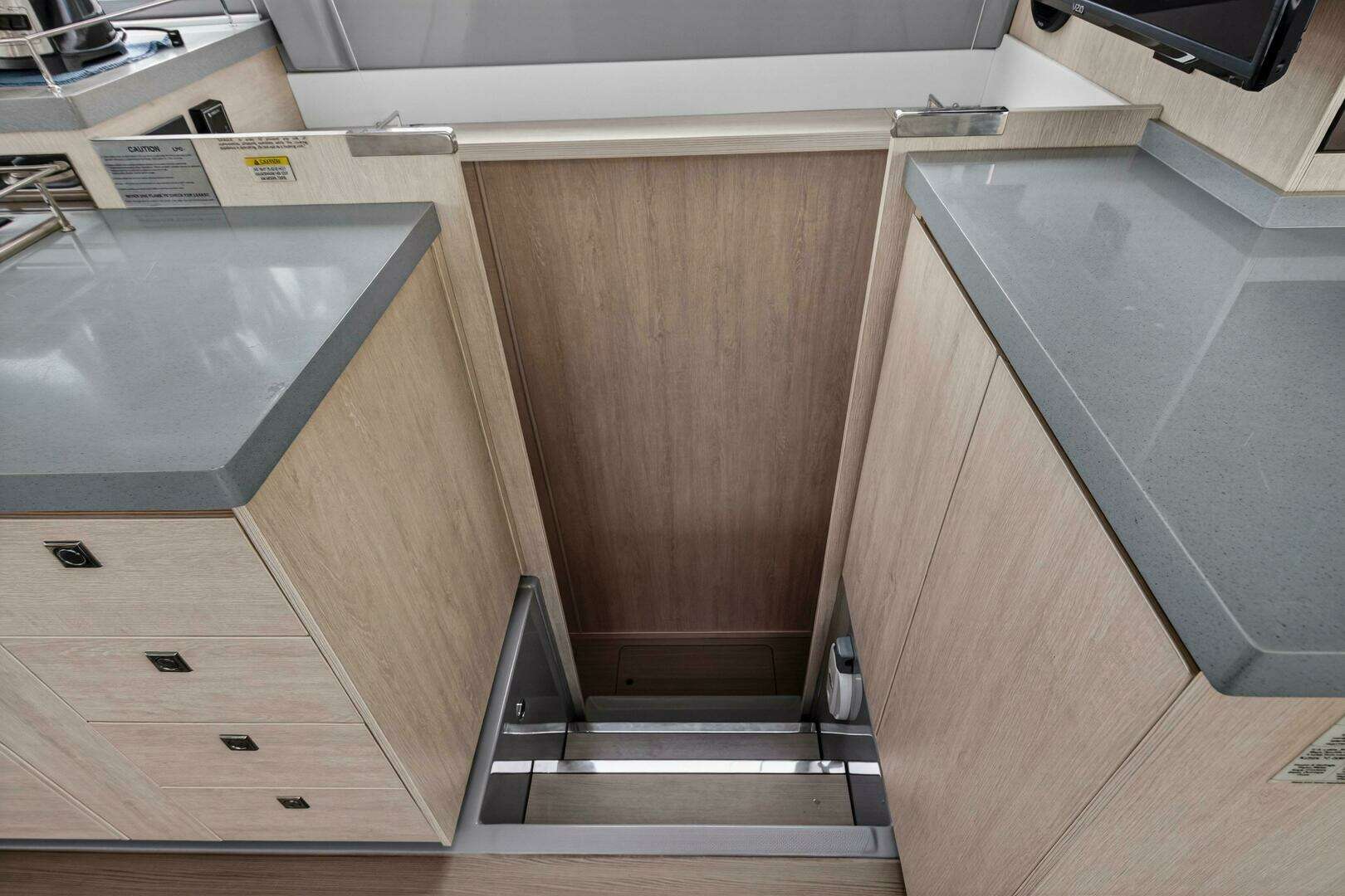 - Upgraded refrigeration includes standard fridge / freezer combo with additional fridges under sink and aft cockpit