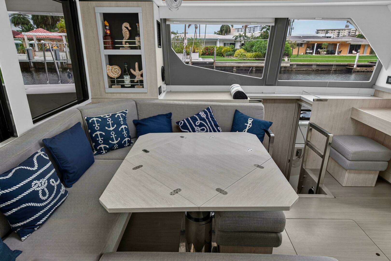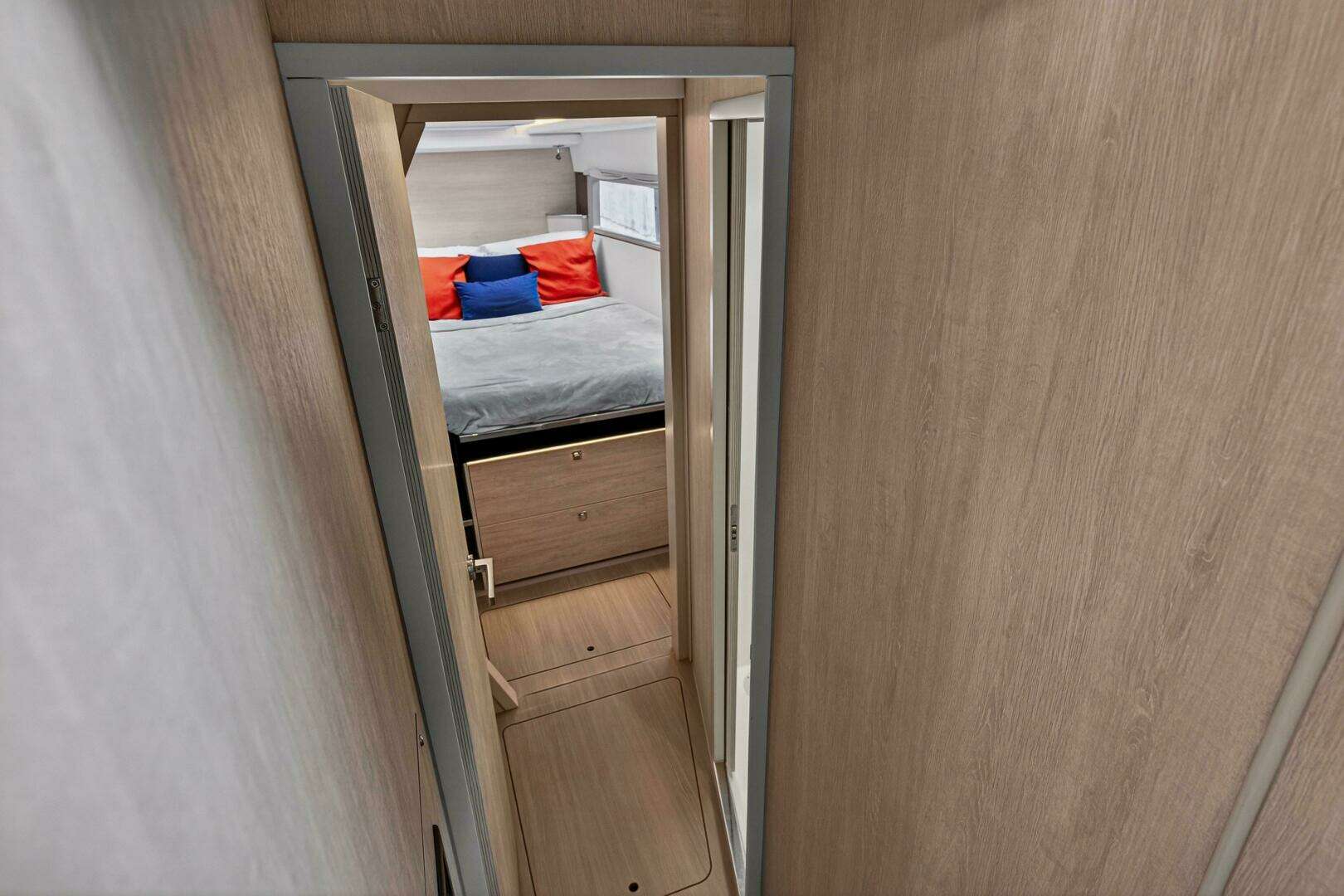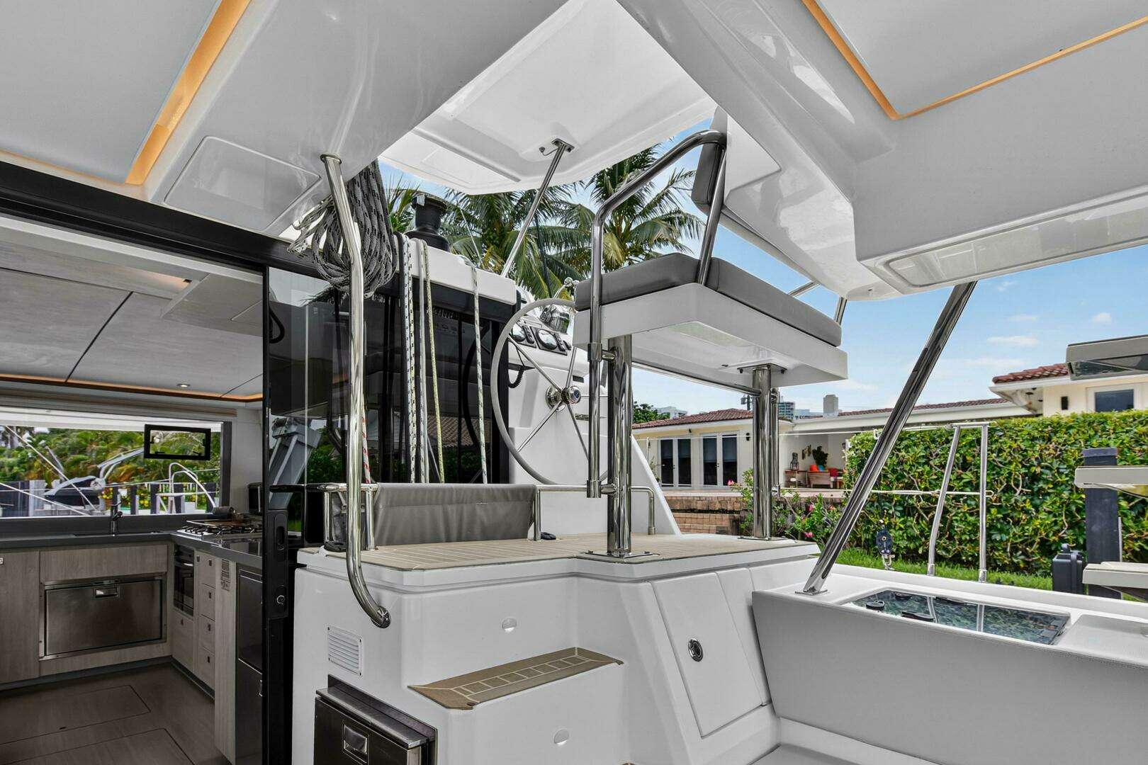 This lounge feature first launched on the award-winning Leopard 50 and like her big sister, the lounge on the Leopard 45 includes a seating area, a sunbed, and a table. Access to the lounge is provided by floating stairs leading up from the aft cockpit, without disrupting the helm station. The helm station remains well protected, and integrated into the cockpit and the rest of the boat.