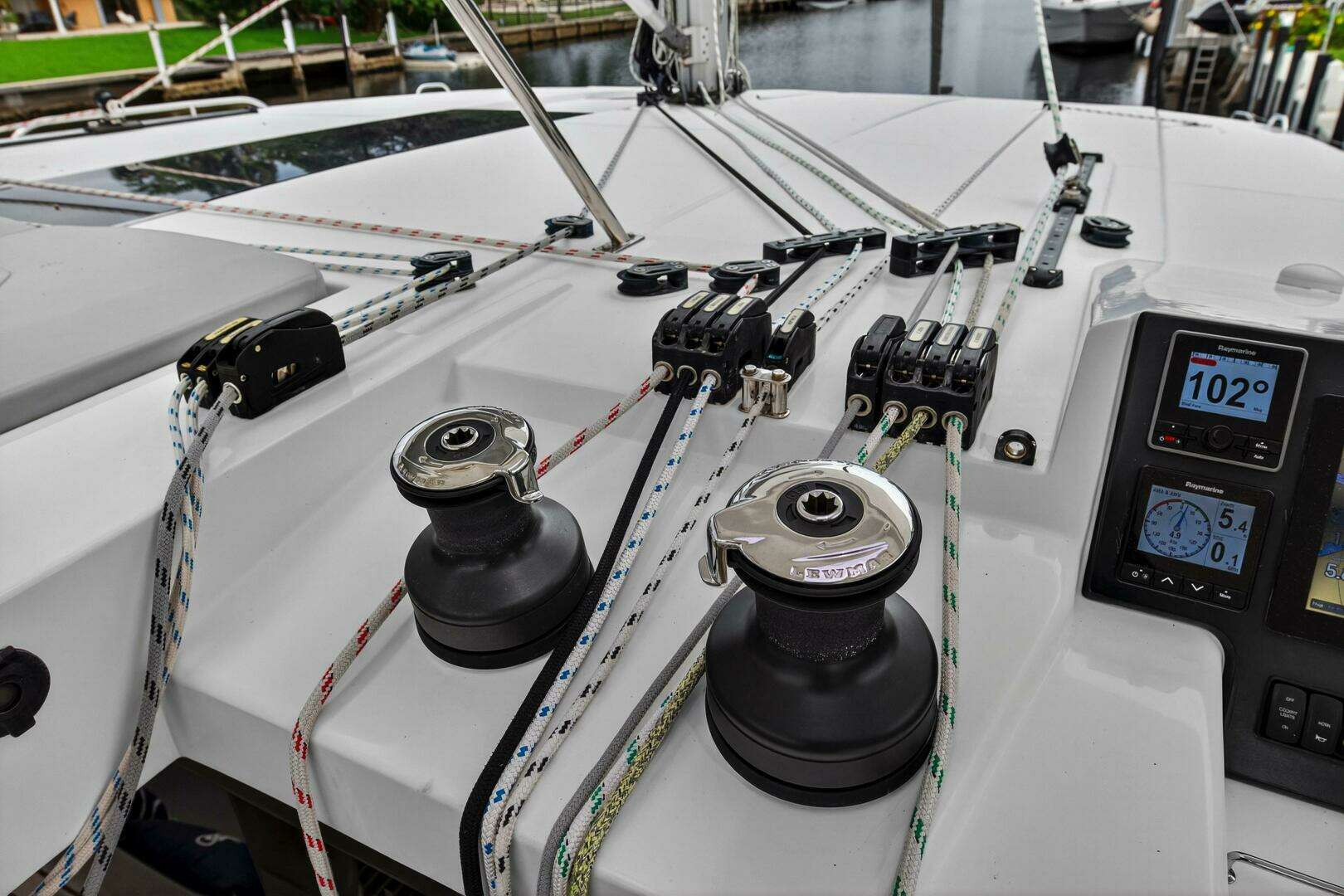 - Upgraded electronics package to include 12" Axiom chartplotter, color radar, AIS, Autopilot, Tri-data wind, speed, and depth transducers, rear camera, and Fusion stereo with upgraded speakers to 6