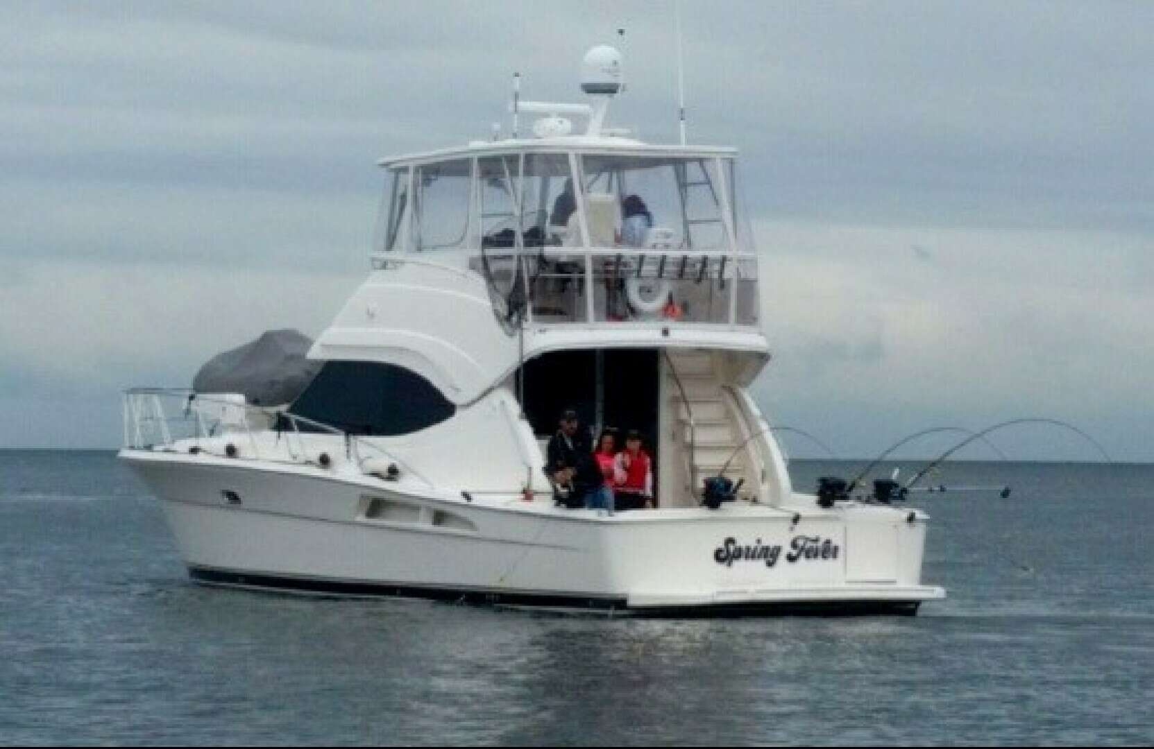 This highly sought after Riviera 45 Open Flybridge is now available for sale! Spring Fever was custom built with a two staterooms & two full ensuite heads. The owners had the factory eliminate the standard upper/lower bunk room to starboard which provided a unique, much more spacious owners cabin f