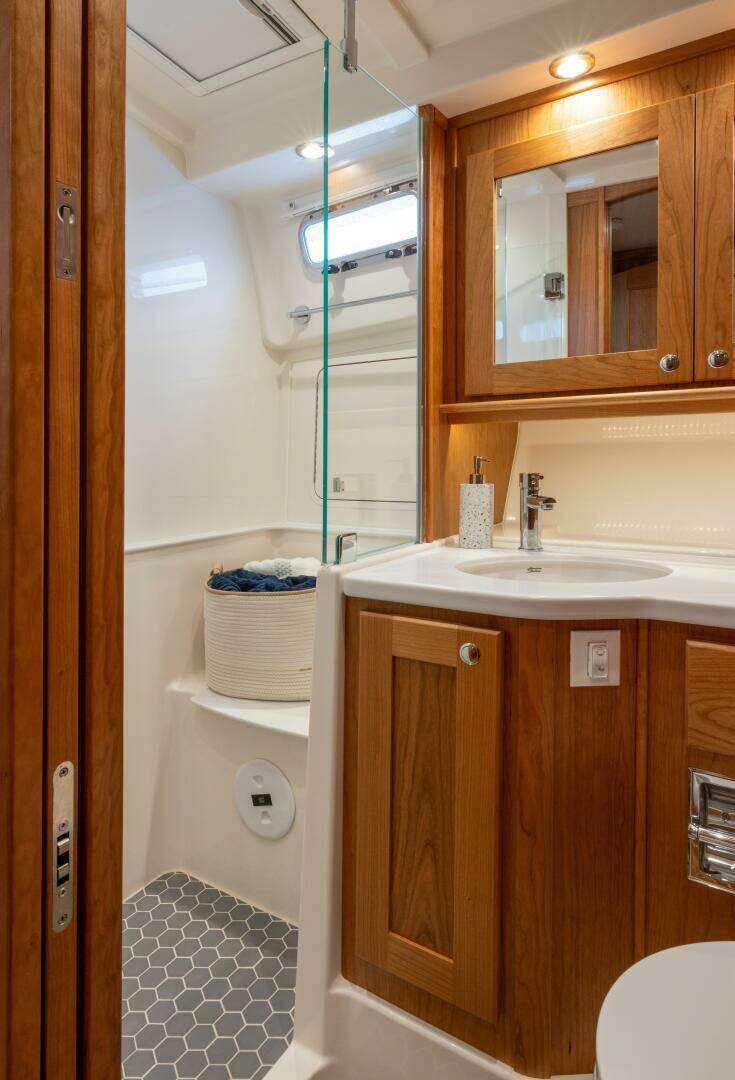- Storage locker outboard of shower