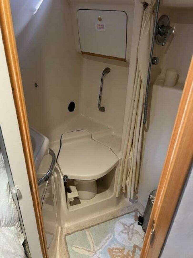 - Two private staterooms + two heads (forward & mid/aft)