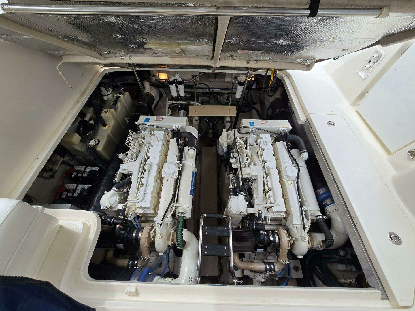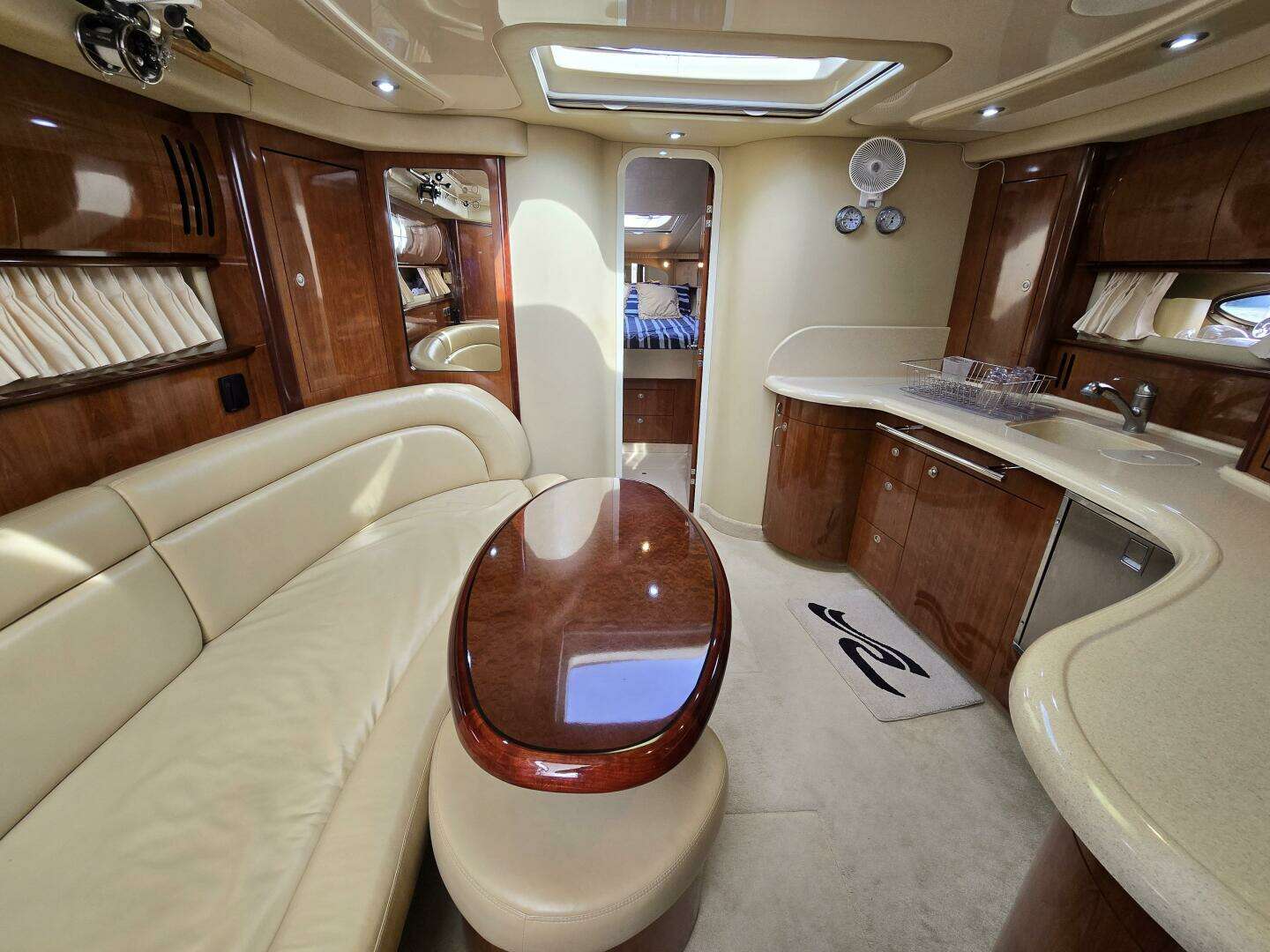 Powered by twin Cummins 6CTA8.3-M3 diesel engines producing 450 horsepower each, Low Profile delivers confident cruising with effortless acceleration and reliable performance. The vessel benefits from traditional Sea Ray V-drive propulsion with four-blade bronze props and dripless shaft seals. A Cummins 7MDKDL 7 kilowatt diesel generator was installed in 2025 and has only 37 hours, providing dependable auxiliary power for air conditioning and domestic loads.