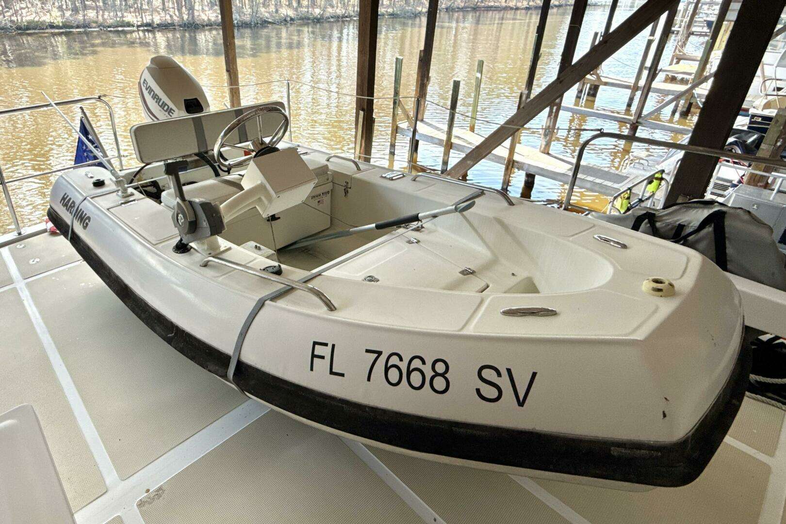 Her single diesel engine and solid semi-displacement hull deliver efficient cruising at approximately 8 knots, with the ability to reach speeds up to 11.5 knots when desired. Close-quarters handling is made easy thanks to hydraulic bow and stern thrusters, giving any captain confidence while docking or maneuvering in tight marinas.