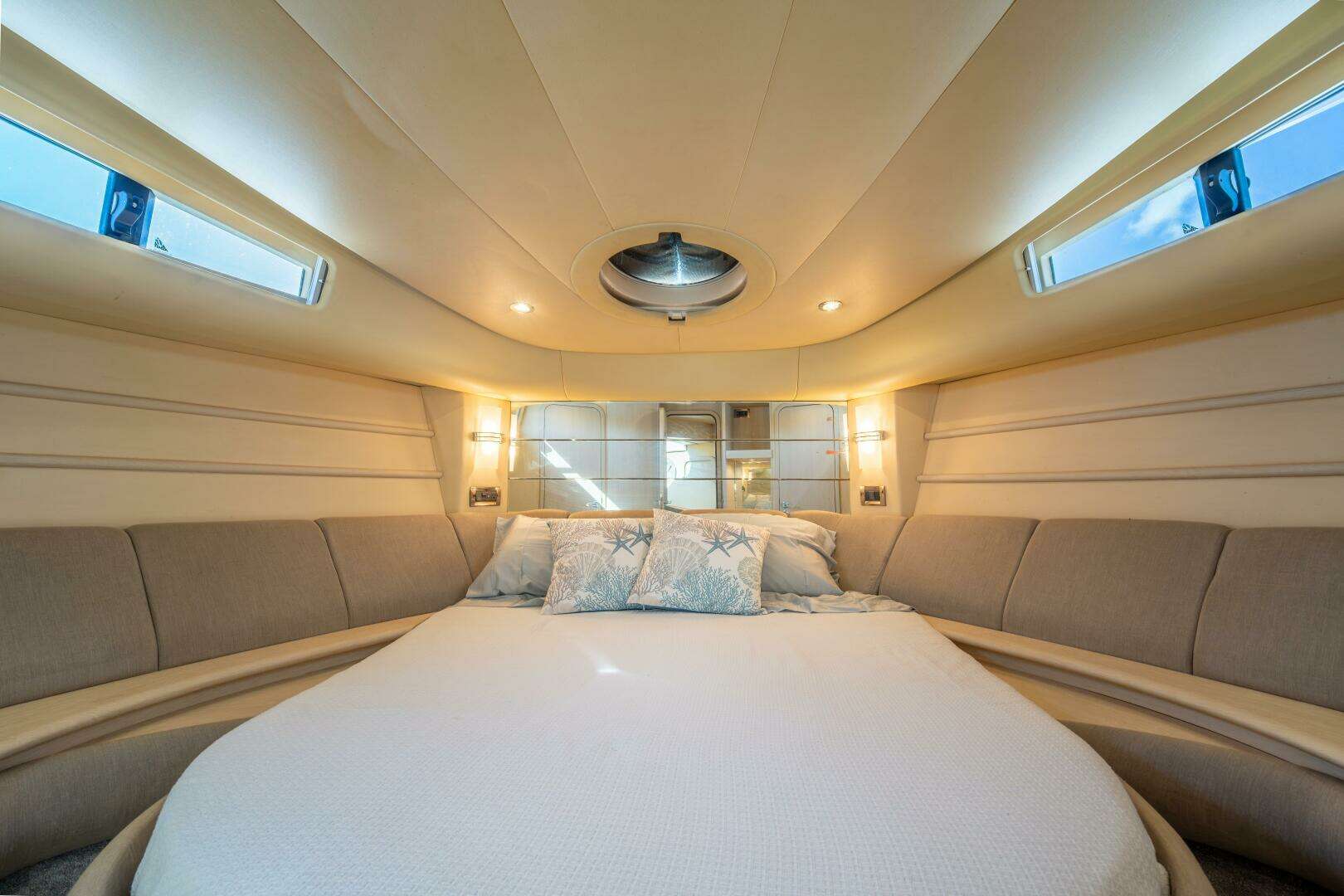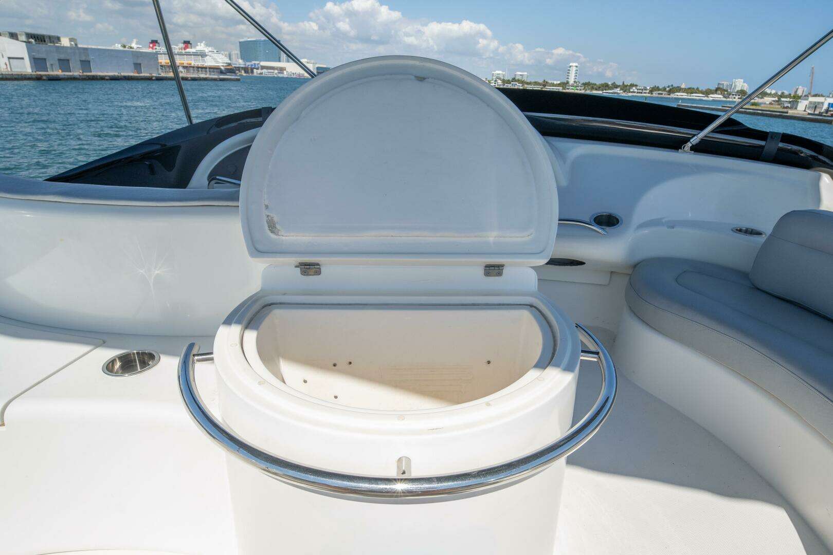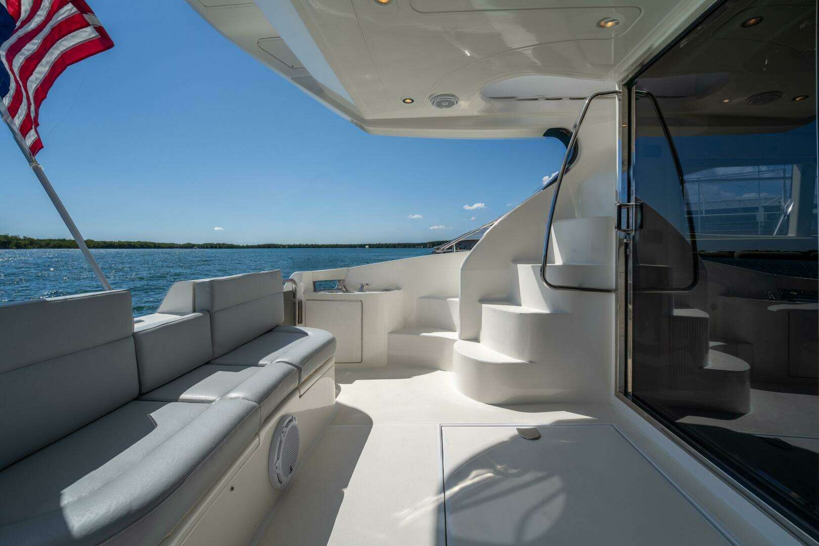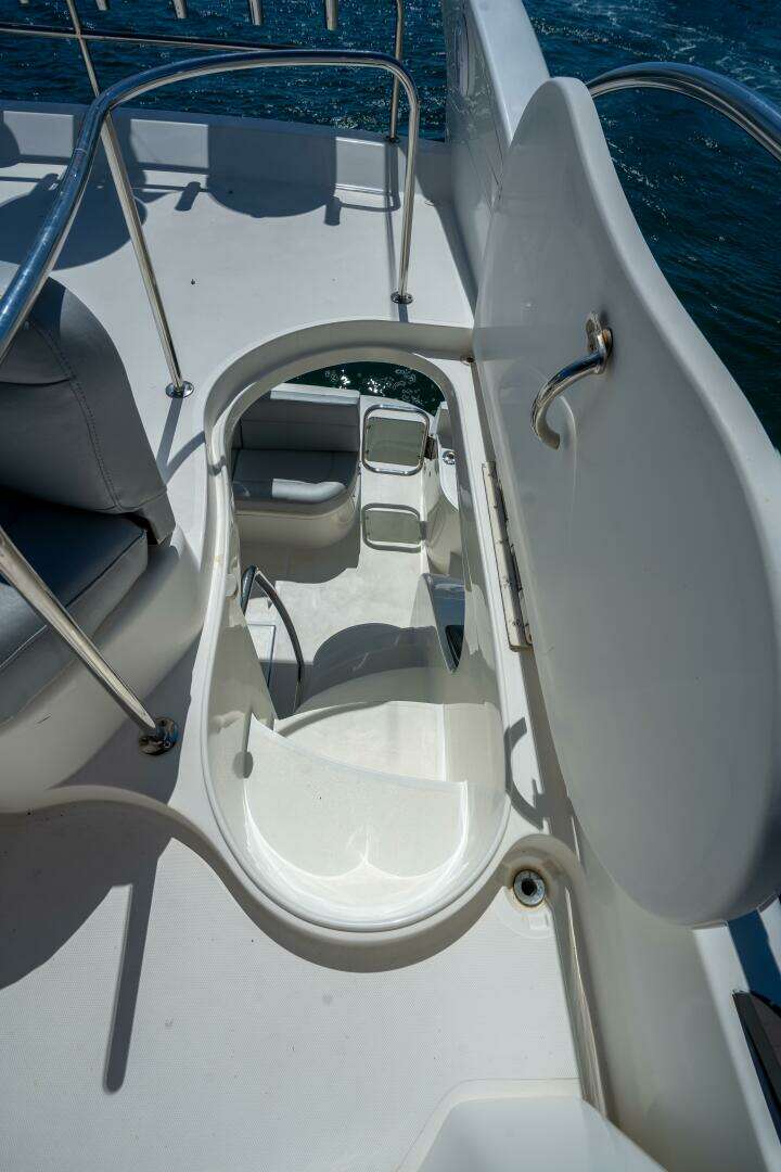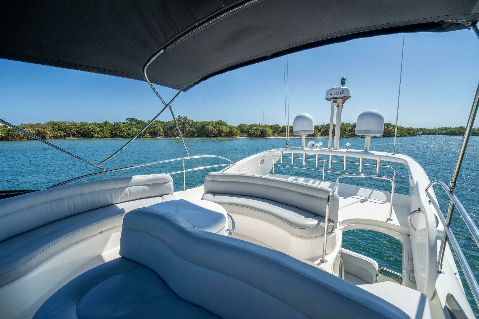 This 2001 Azimut 45 is a perfect blend of performance, comfort, and classic Italian design. She has the sleek lines Azimut is known for, paired with a spacious layout that makes her feel much larger than a 45-footer. The flybridge is equipped with a Bimini top, giving you great shade while cruising or relaxing at anchor. It’s the perfect setup for South Florida boating — open and airy when you want it, protected when you need it. The bridge offers excellent visibility and plenty of seating for guests.