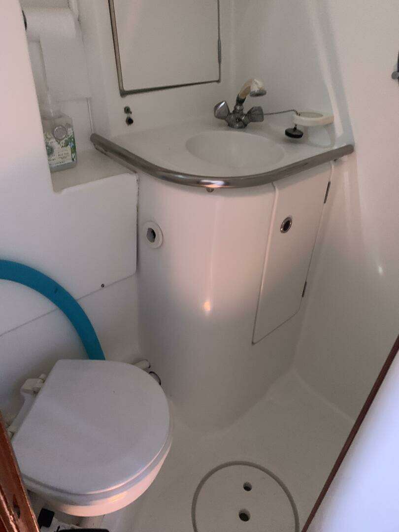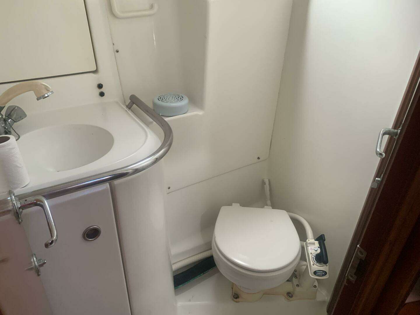 - Aft of the main cabin is a guest cabin to Port with a queen berth
